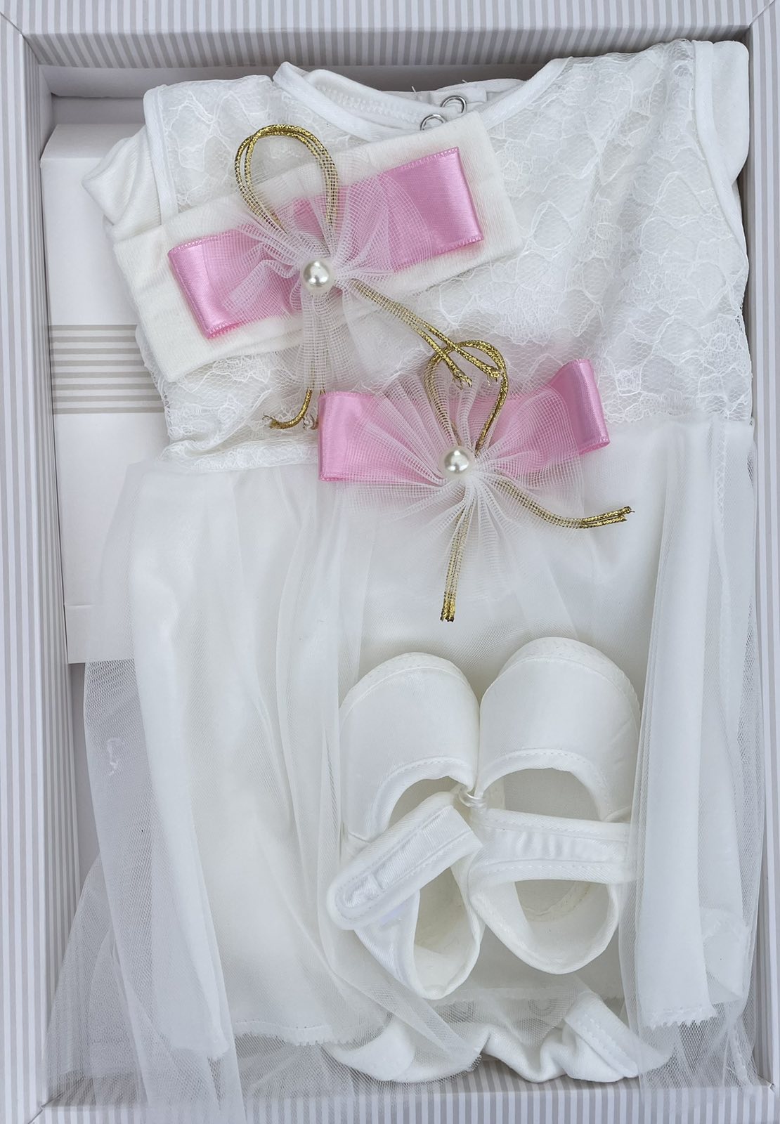 Комплект Enjoy "Бант" білий з рожевим, дівчинка 0-3 місяців оптом уп. - 1 шт.