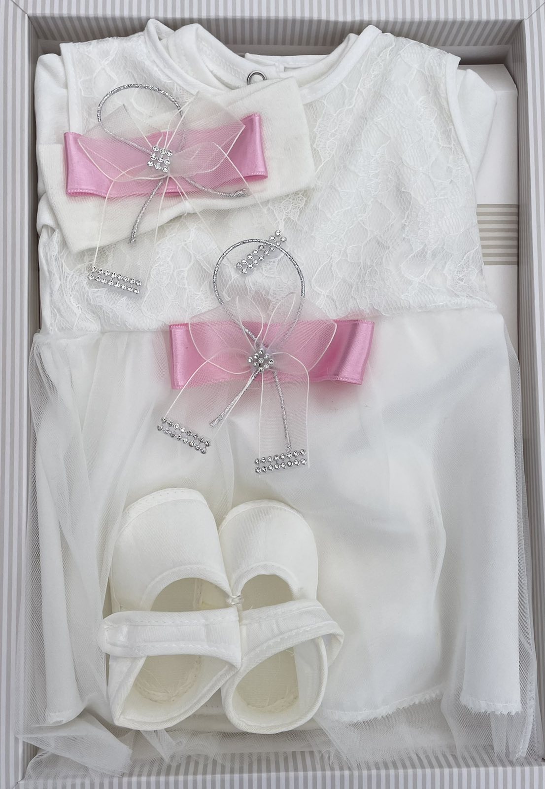 Комплект Enjoy "Кам'янці" білий з рожевим, дівчинка 0-3 місяців оптом уп. - 1 шт.