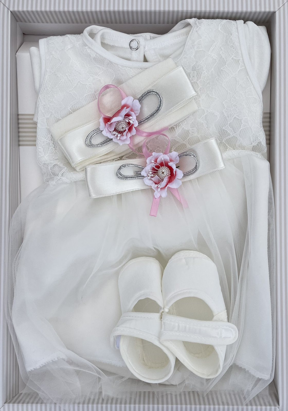 Комплект Enjoy "Квіточка" білий з малиновим, дівчинка 0-3 місяців оптом уп. - 1 шт.