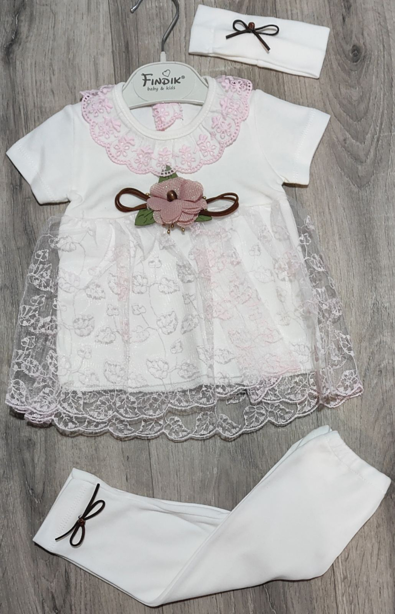 Комплект Findik «Бантик» бело-розовый, девочка 3-6-9 месяцев оптом уп. - 3 шт.