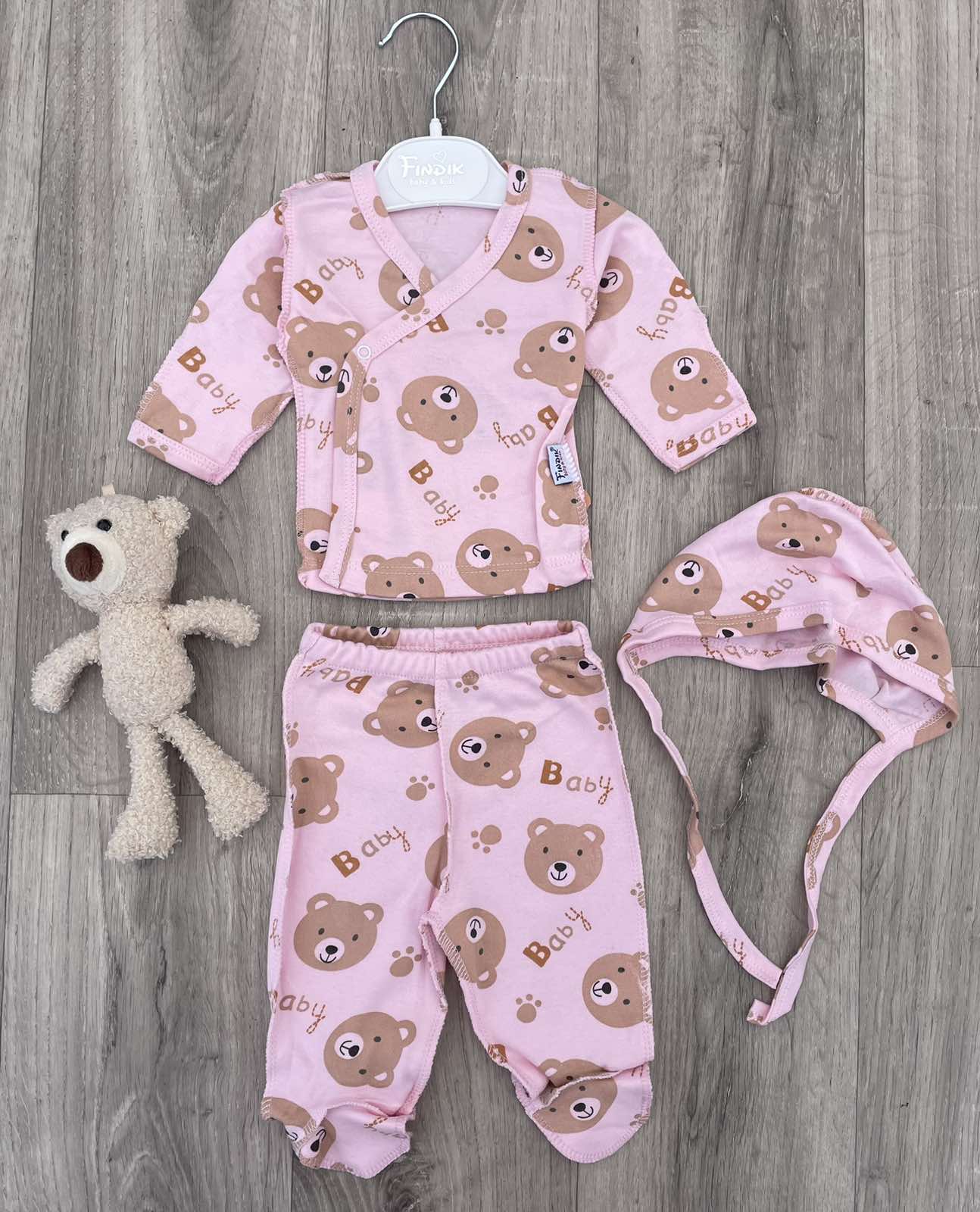 Комплект Findik "Bear" розовый, девочка 0-3 месяцев оптом уп. - 3 шт.