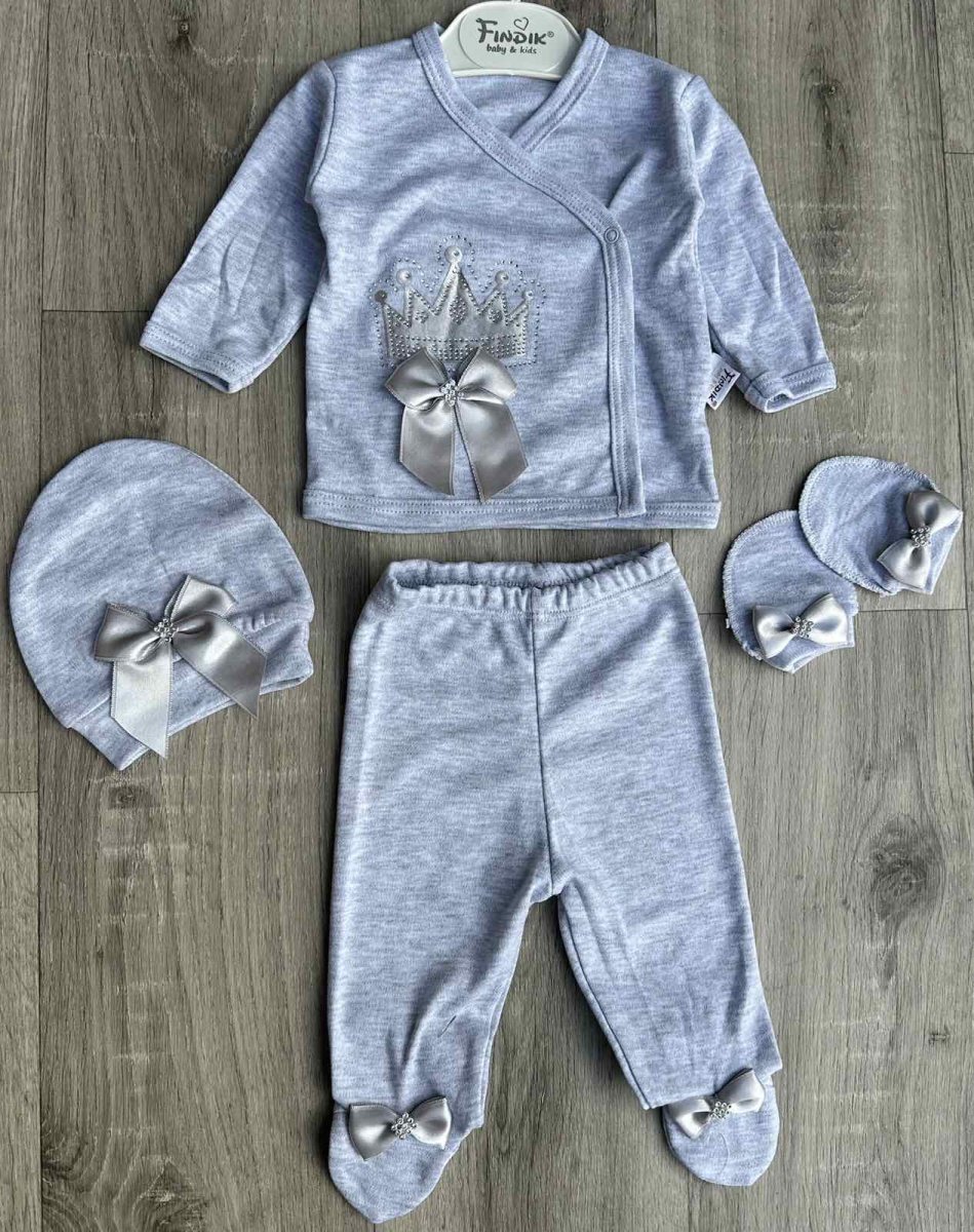 Комплект Findik «Коронка» сірий, хлопчик 3 місяці оптом уп. - 2 шт.