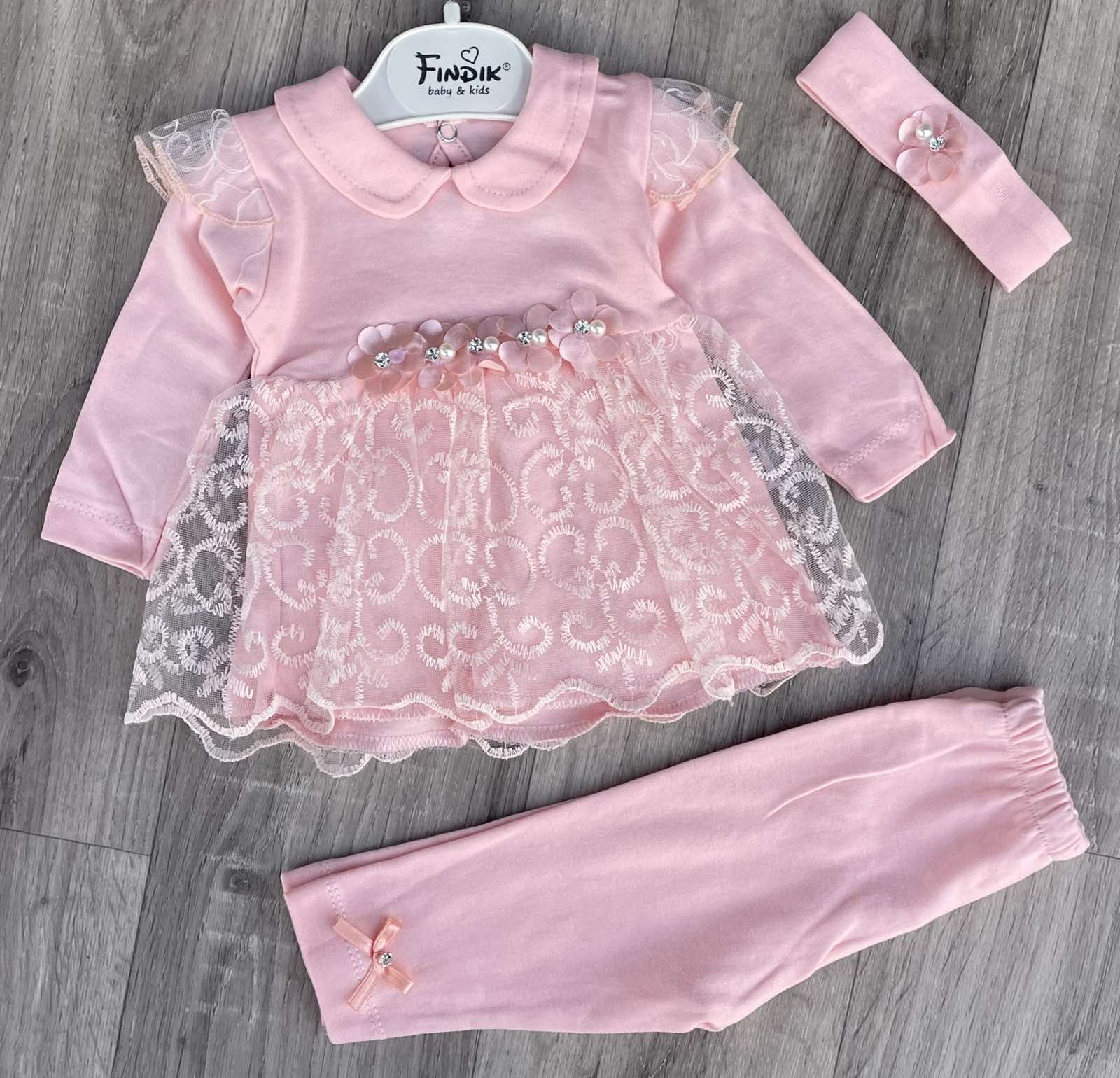 Комплект Findik «Квіти» персиковий, дівчинка 3-6-9 місяців оптом уп. - 3 шт.