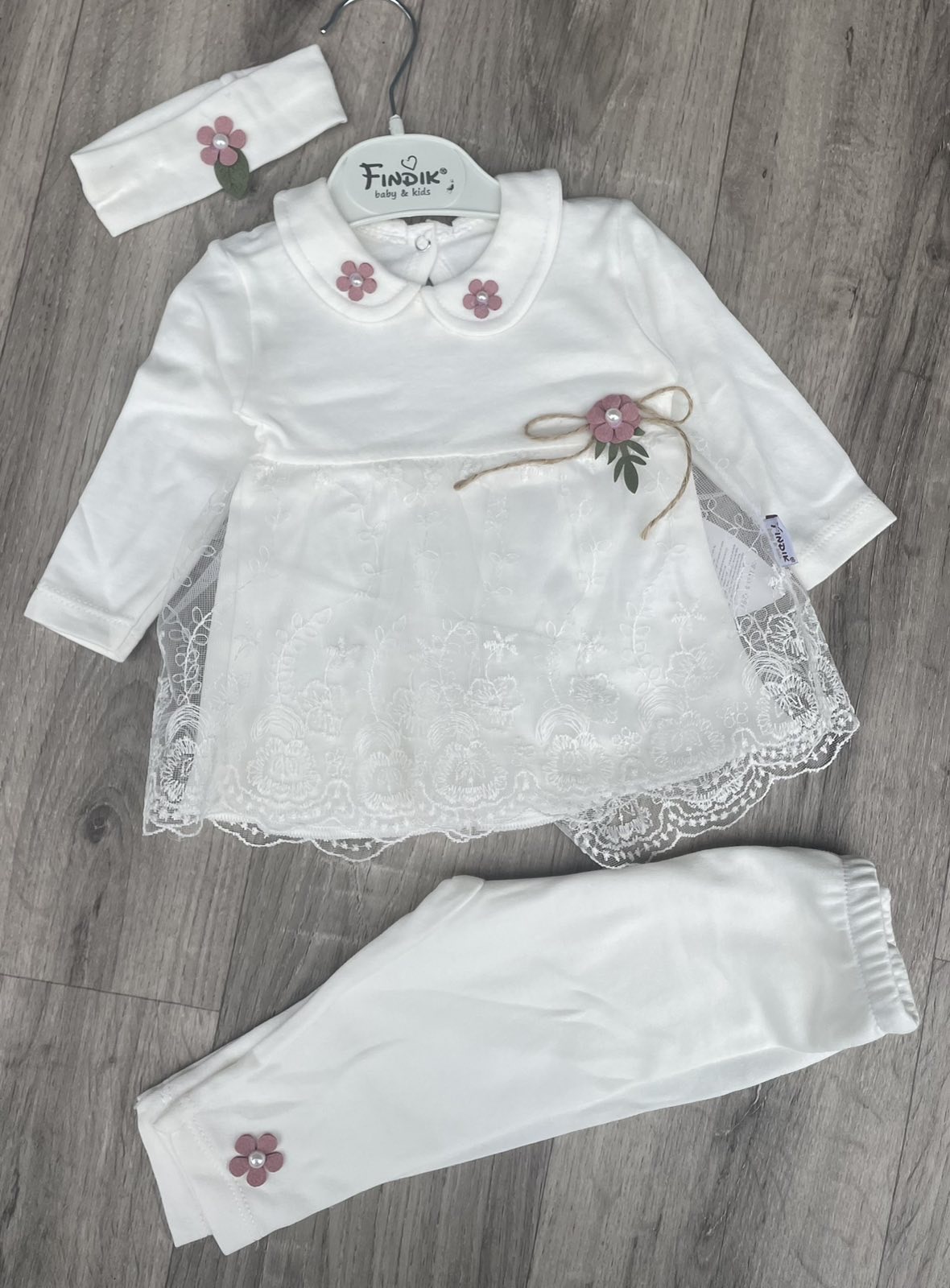 Комплект Findik «Квіточка» пудра, дівчинка 3-6-9 місяців оптом уп. - 3 шт.