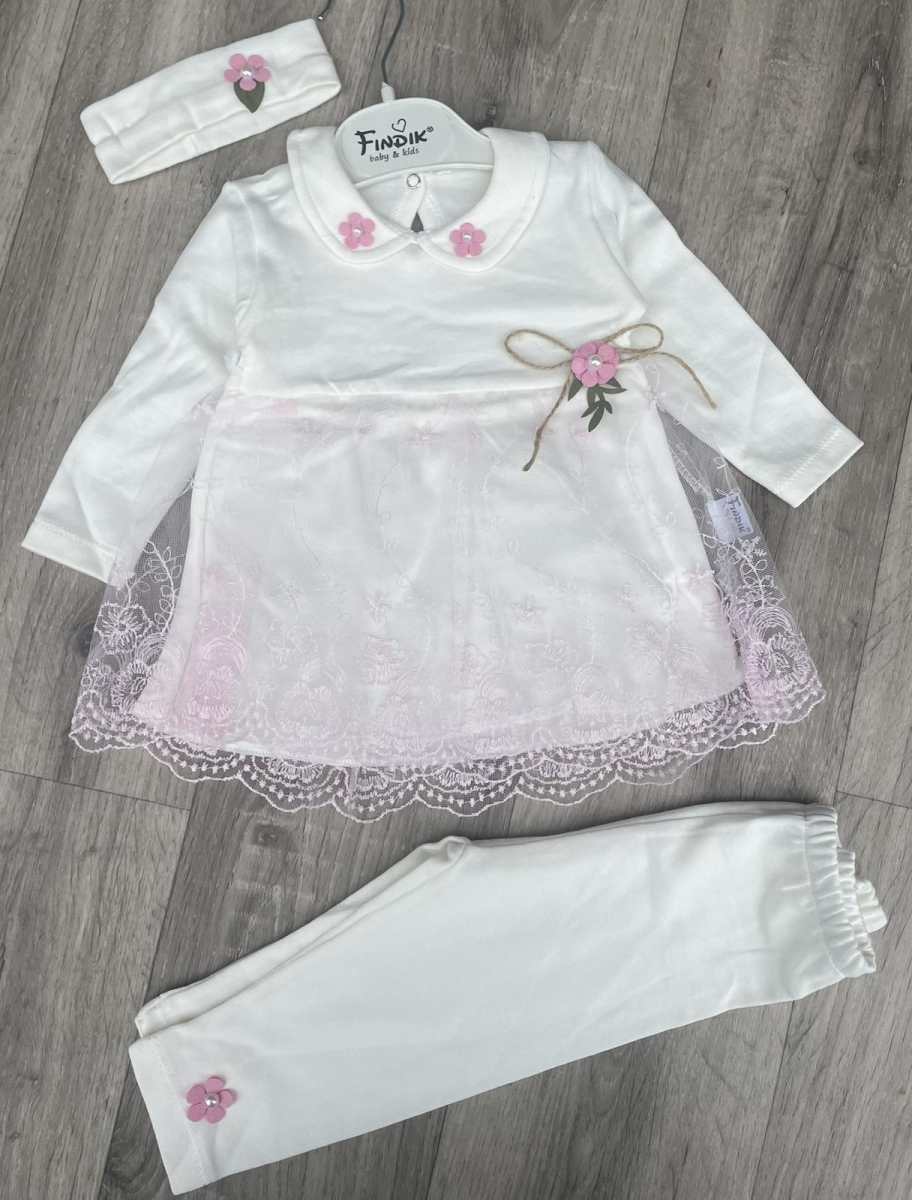 Комплект Findik «Квіточка» рожевий, дівчинка 3-6-9 місяців оптом уп. - 3 шт.