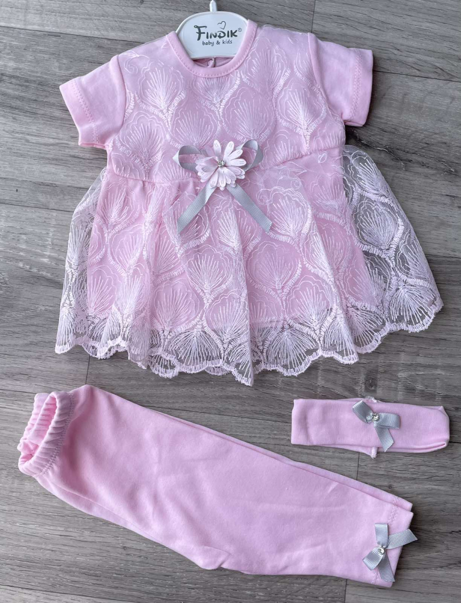 Комплект Findik «Квіточка» рожевий, дівчинка 3-6-9 місяців оптом уп. - 3 шт.
