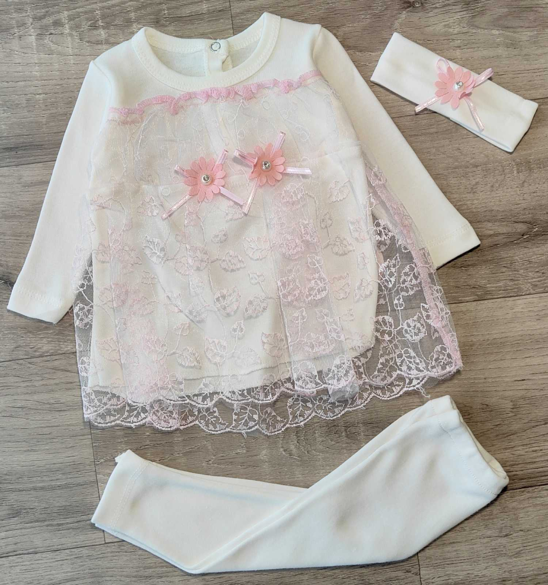 Комплект Findik "Квіточки", рожевий, дівчинка 3-6-9 місяців оптом уп. - 3 шт.