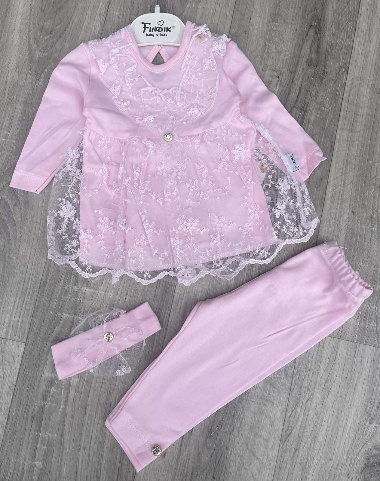 Комплект Findik «Мереживо» рожевий, дівчинка 3-6-9 місяців оптом уп. - 3 шт.