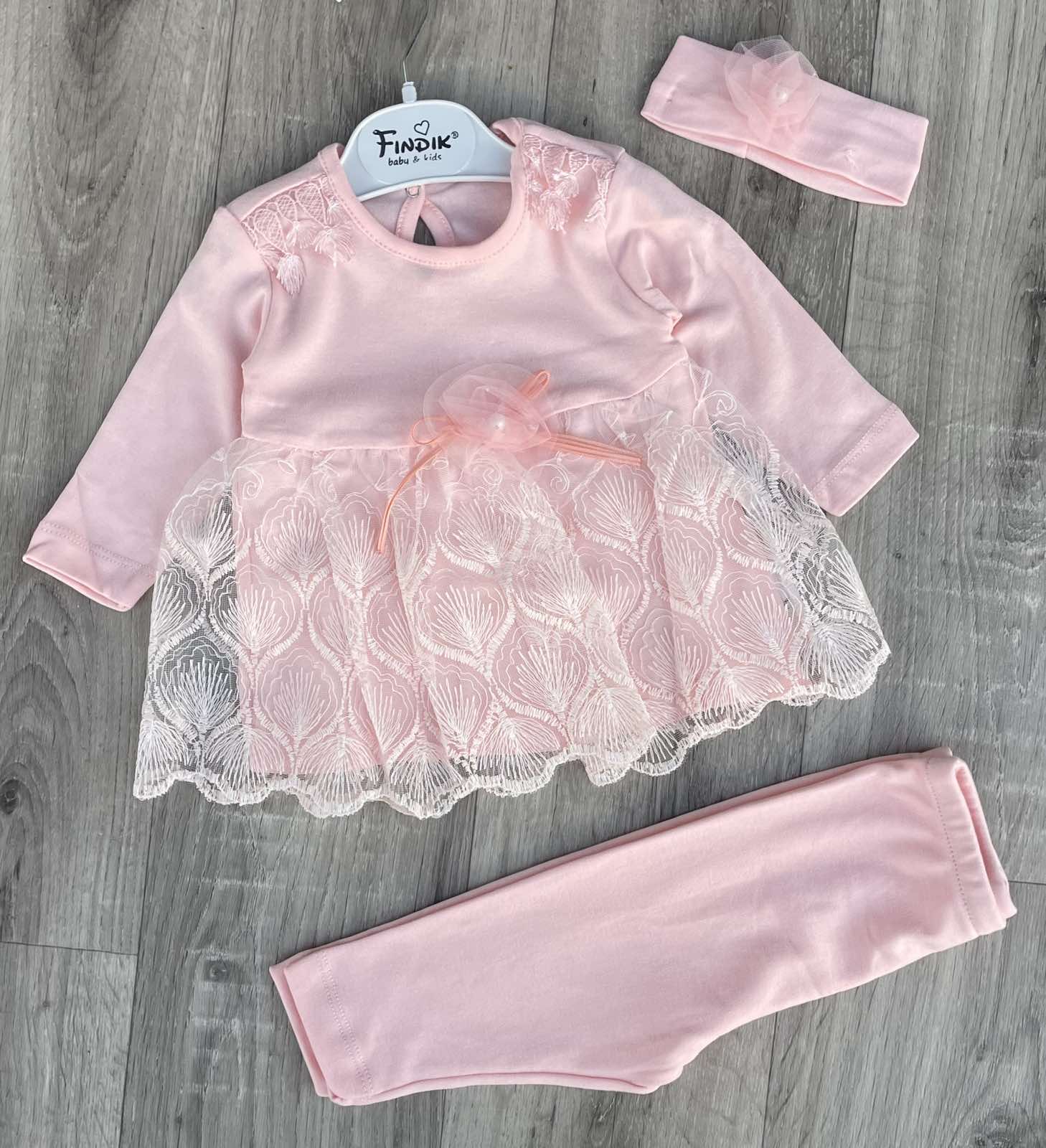 Комплект Findik «Троянда» персиковий, дівчинка 3-6-9 місяців оптом уп. - 3 шт.