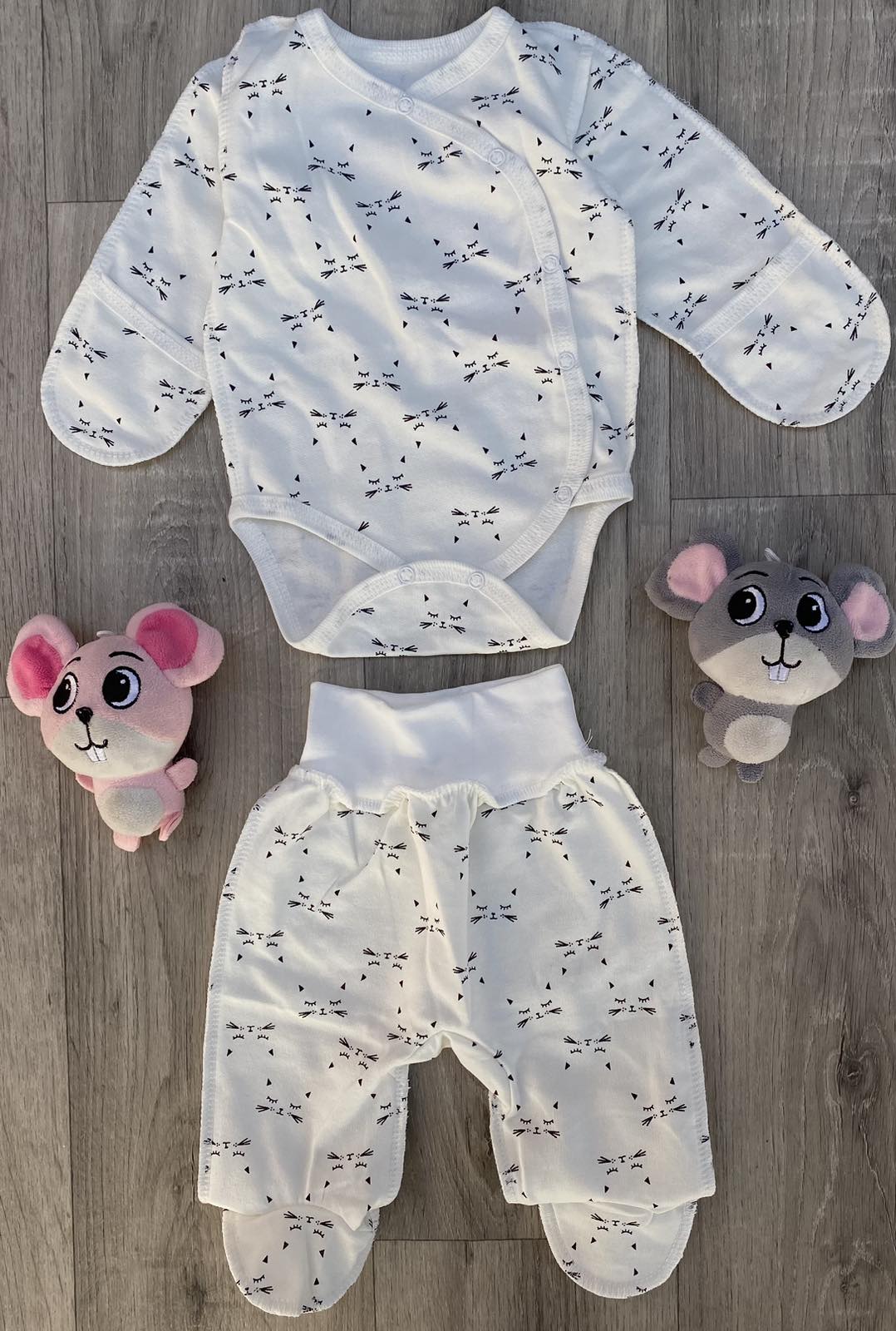 Комплект "Киця" молочний, дівчинка 0-3 місяців оптом уп. - 2 шт.