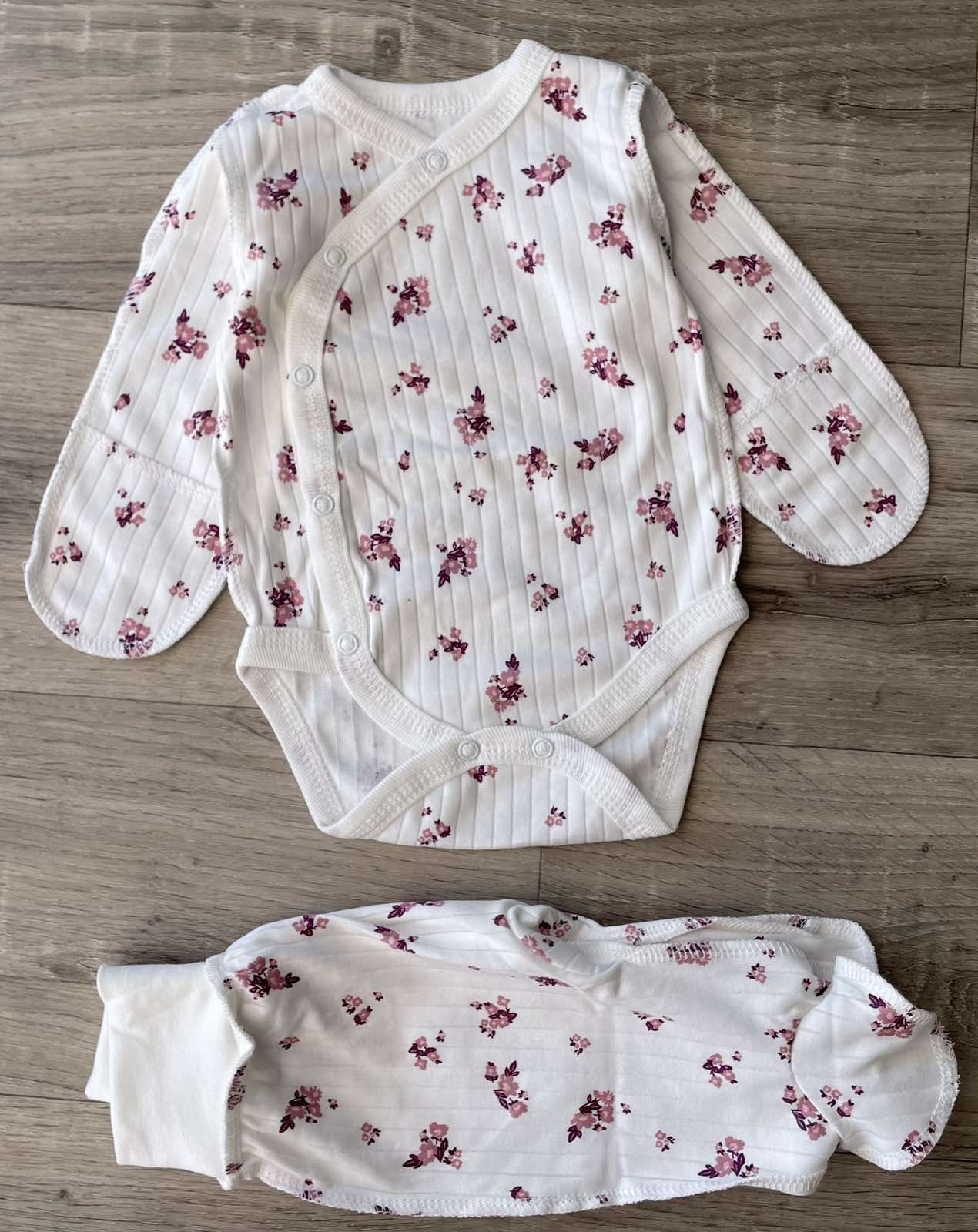 Комплект "Квіточки" молочний, дівчинка 0-3 місяців оптом уп. - 2 шт.