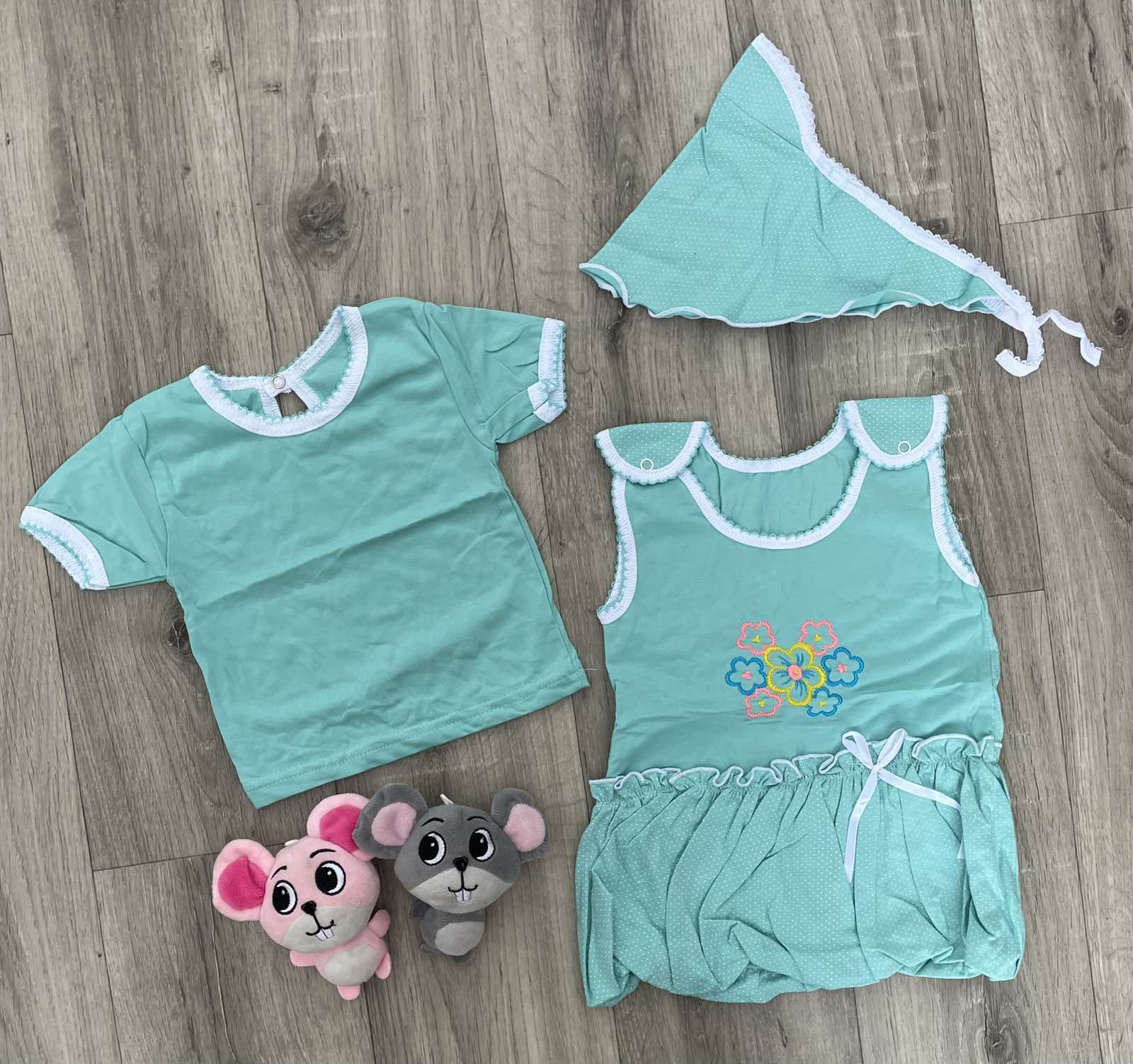 Комплект "Квіточки" м'ятний, дівчинка 9-12-18 місяців оптом уп. - 3 шт.
