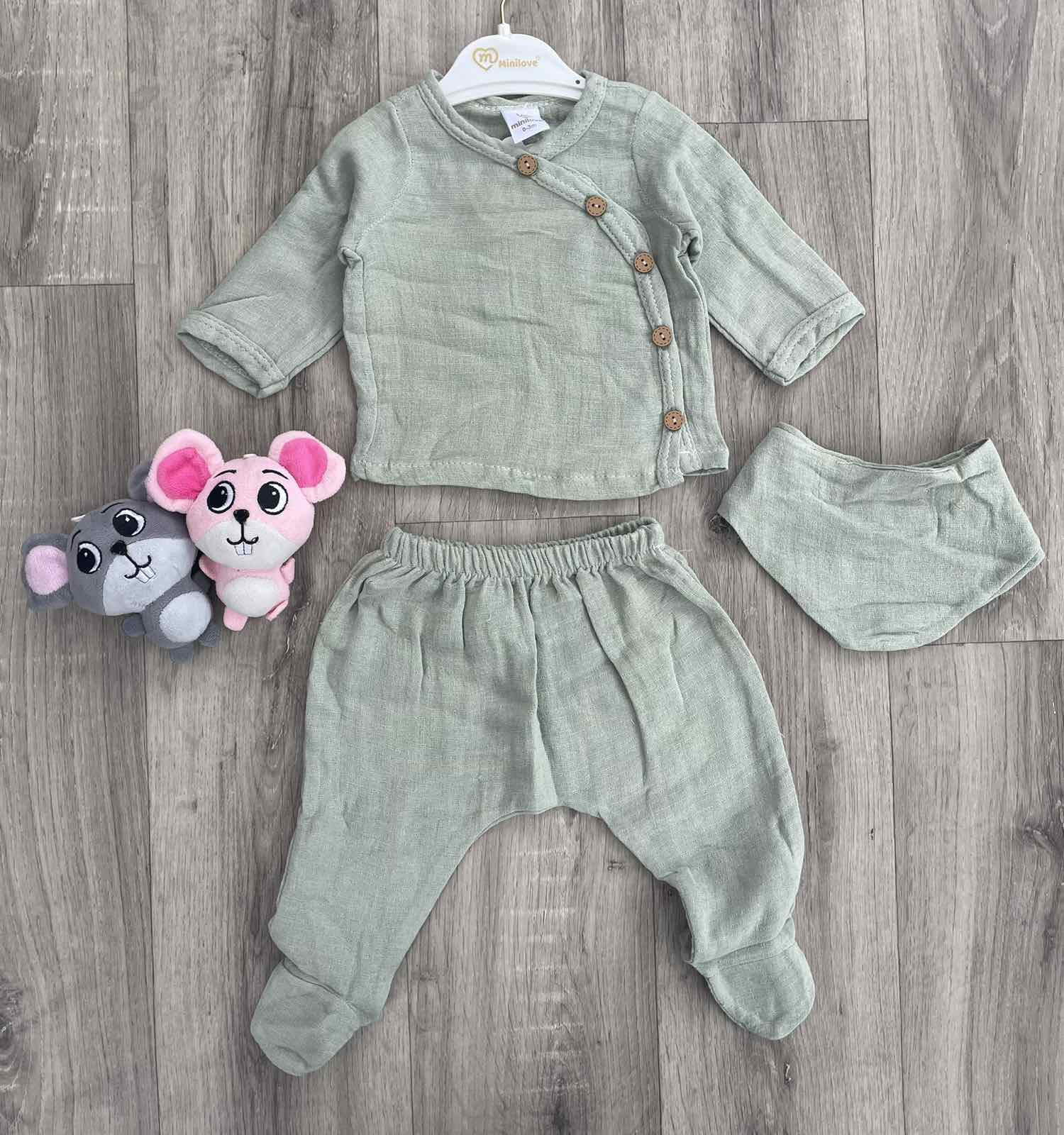 Комплект Mini Love "Мюслин" хаки, унісекс 0-3-6 місяців оптом уп. - 3 шт.