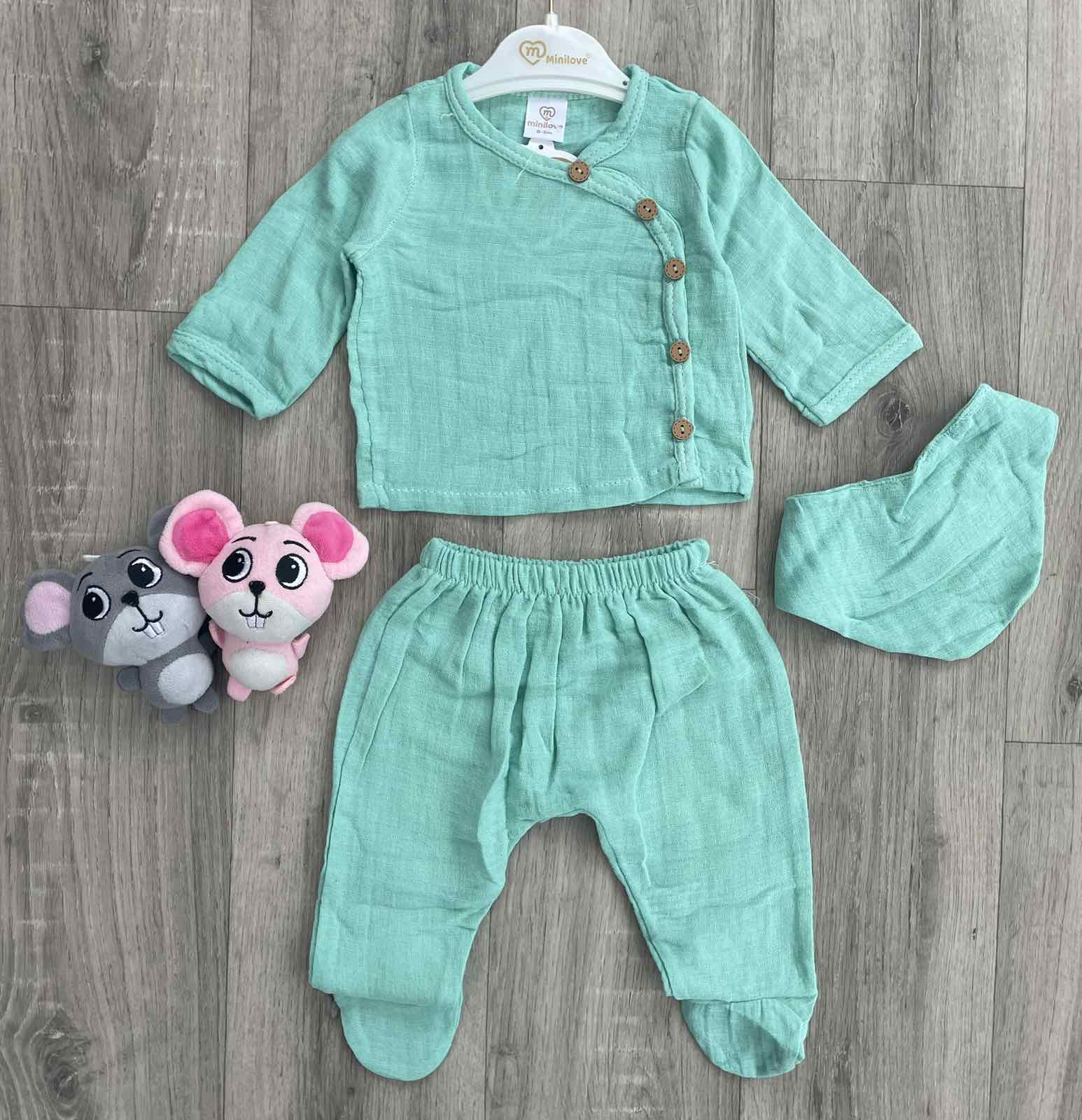 Комплект Mini Love "Мюслин" зелений, унісекс 0-3-6 місяців оптом уп. - 3 шт.