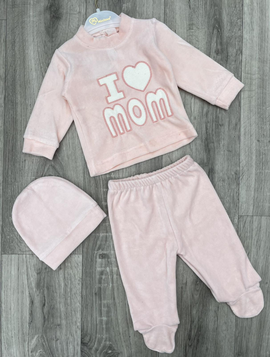 Комплект Minilove «I❤️Mom» персиковий, дівчинка 0-3-6 місяців оптом уп. - 3 шт.