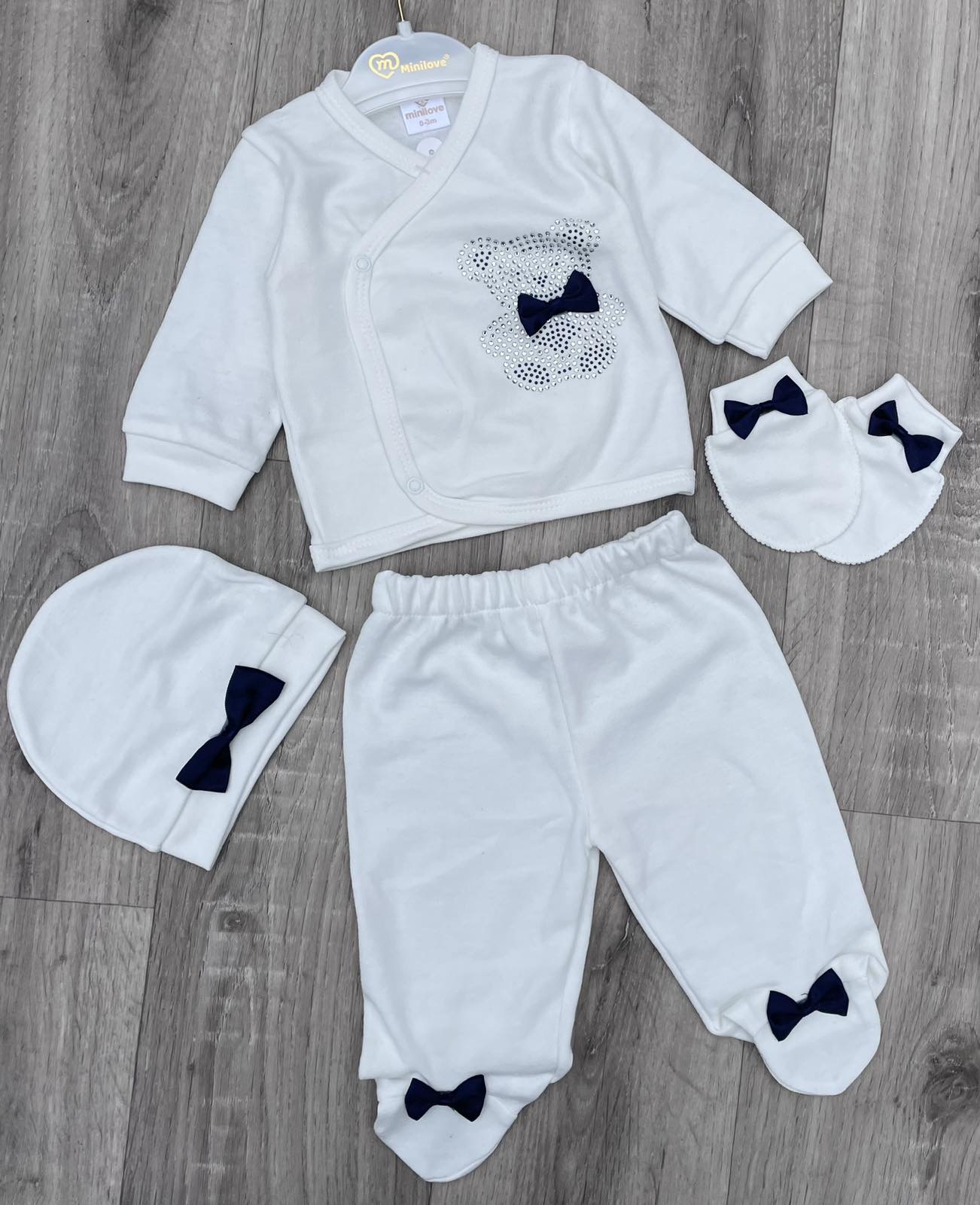 Комплект Minilove «Ведмедик» біло-синій, хлопчик 0-3-6 місяців оптом уп. - 3 шт.
