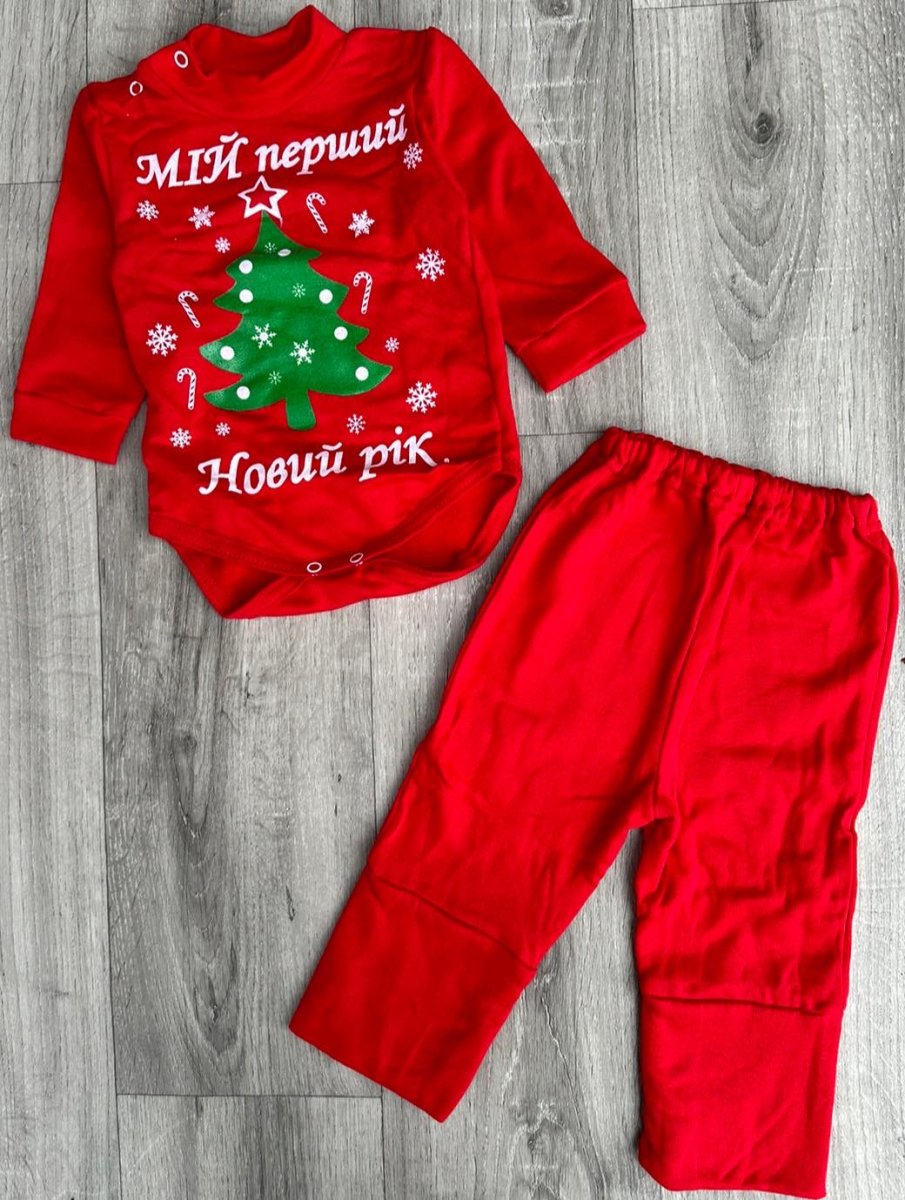 Комплект «Мій перший Новий рік» червоний, унісекс 6-9-12-24 місяців оптом уп. - 4 шт.