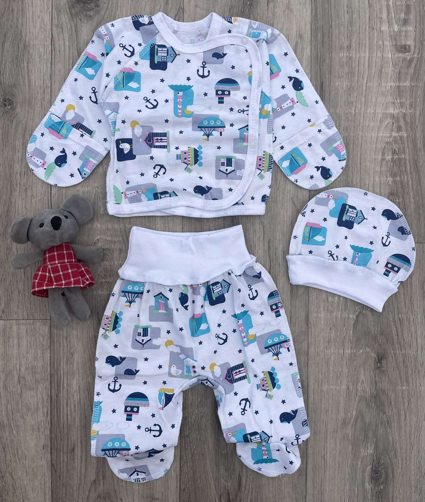 Комплект "Морской" белый, мальчик 0-3 месяцев оптом уп. - 2 шт.