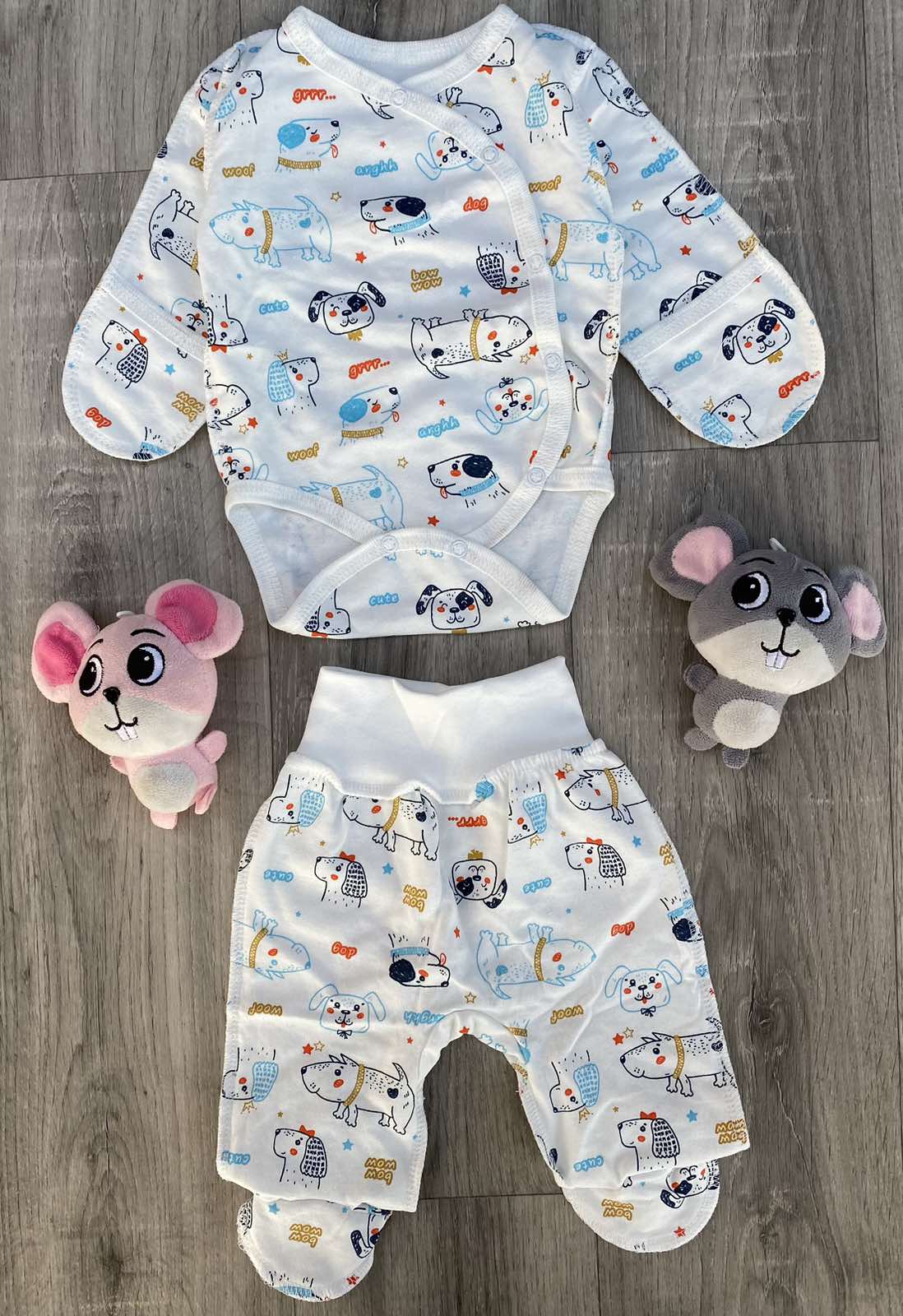 Комплект "Песики" молочний, хлопчик 0-3 місяців оптом уп. - 2 шт.