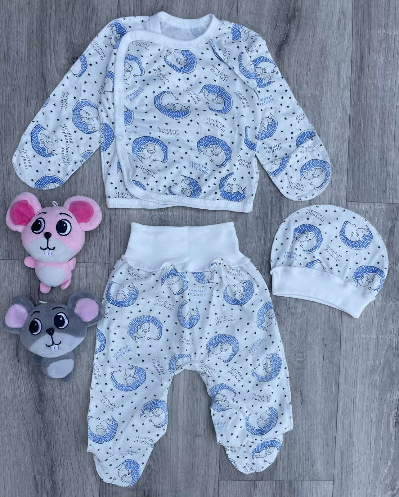 Комплект "Слоненятко" блакитний, хлопчик 0-3 місяців оптом уп. - 2 шт.