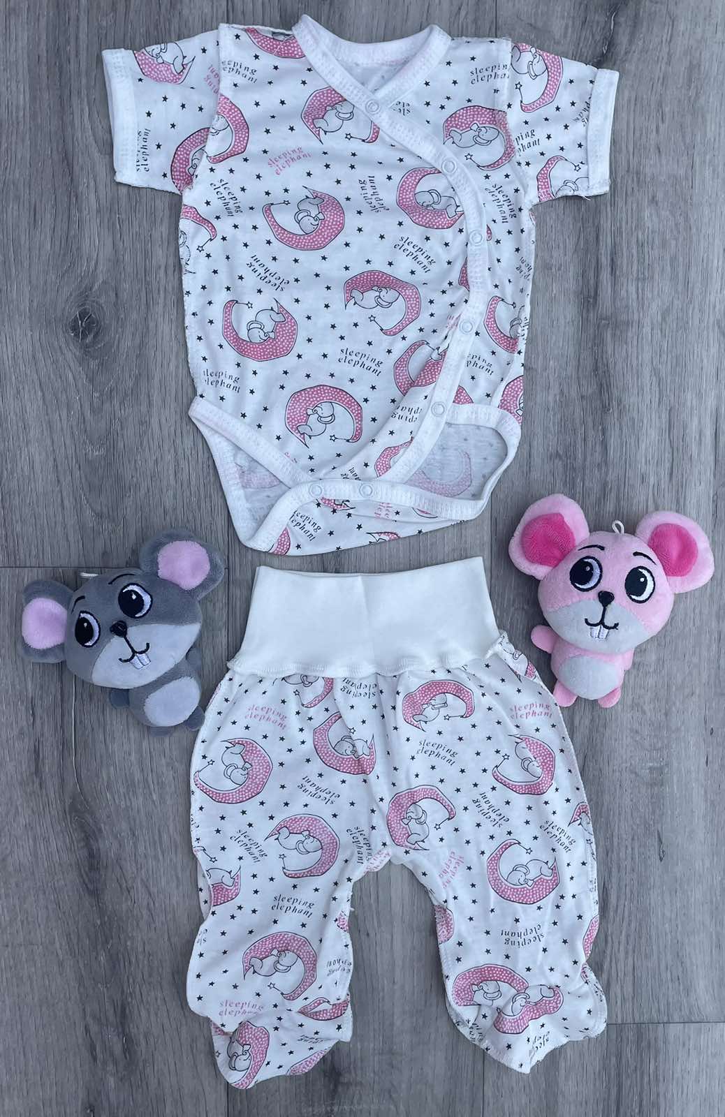 Комплект "Слонёнок" розовый, девочка 0-3 месяцев оптом уп. - 2 шт.