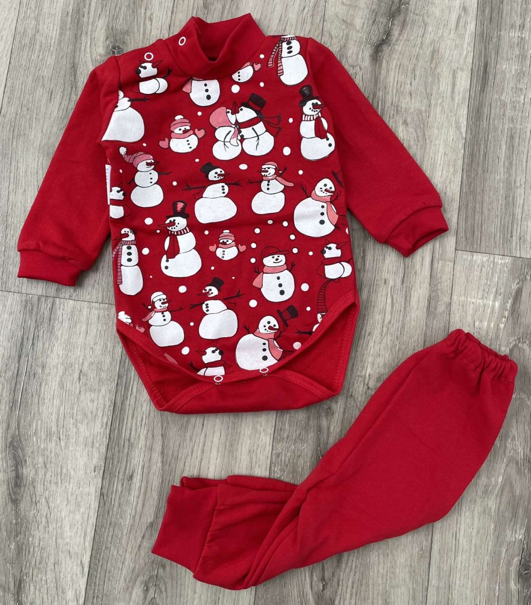 Комплект «Сніговички» червоний, унісекс 9-12-18 місяців, фото