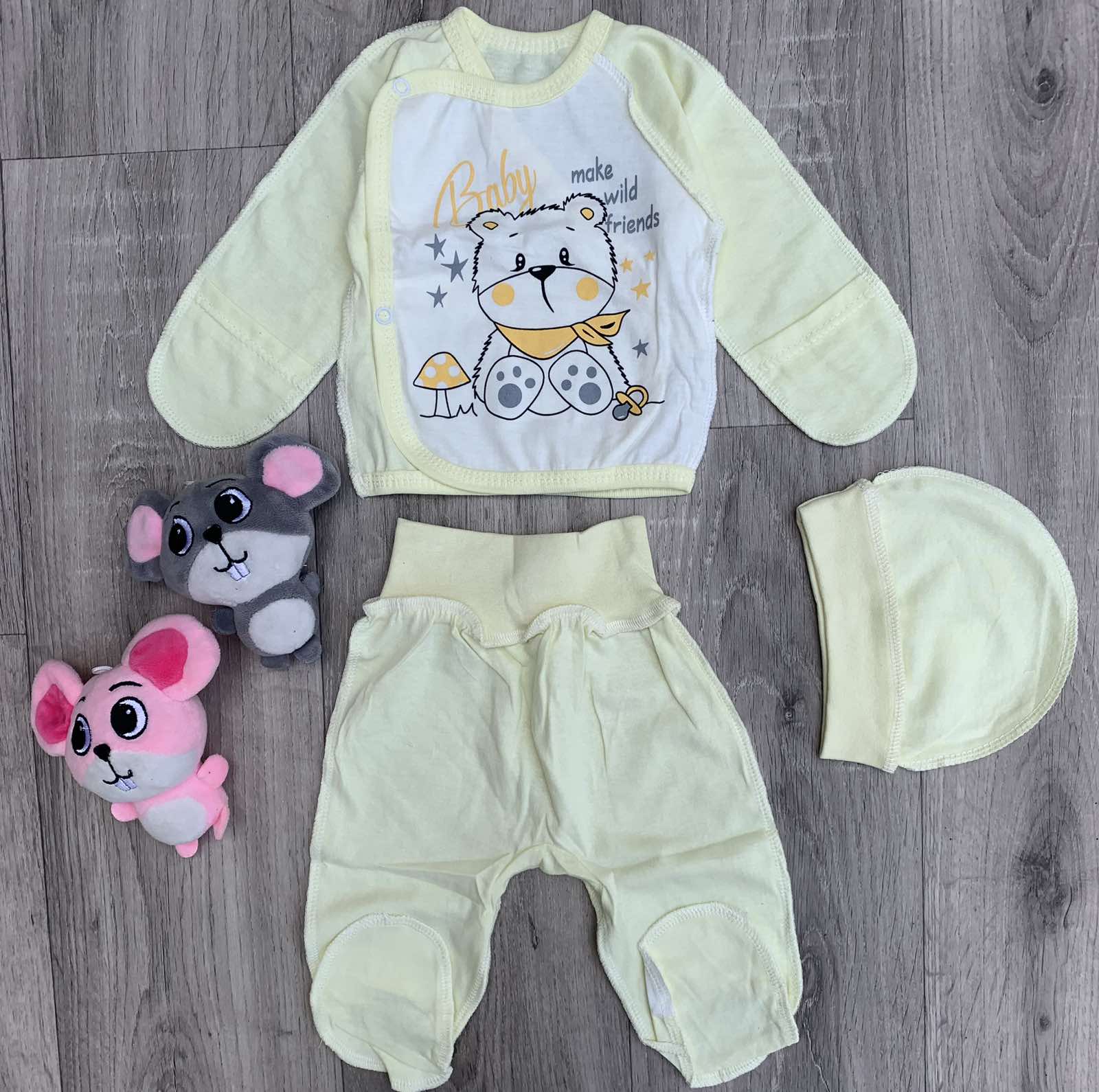 Комплект "Ведмедик" жовтий, хлопчик 0-3 місяців оптом уп. - 2 шт.
