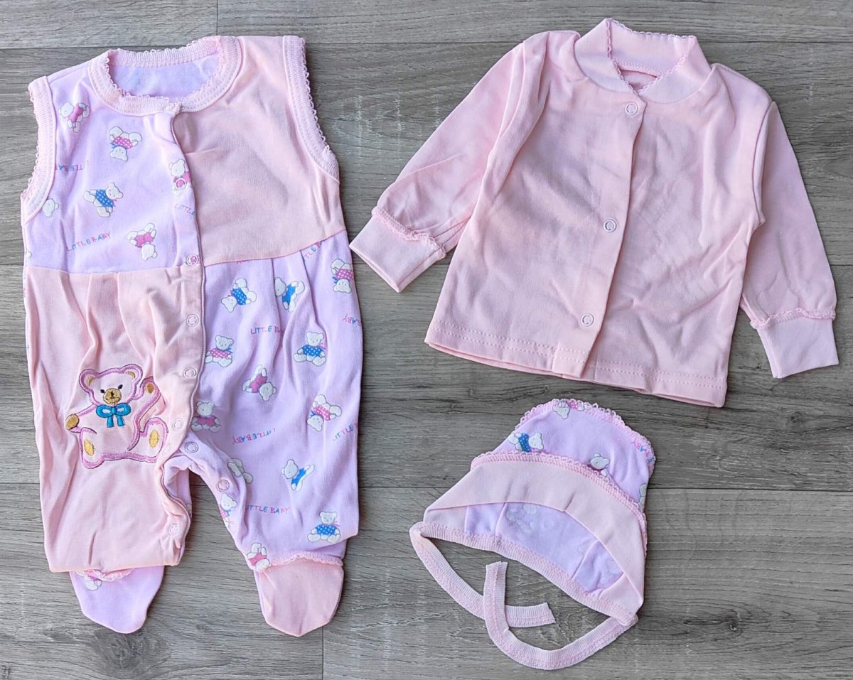 Комплект "мишки" розовый, девочка 0-3 месяцев оптом уп. - 3 шт.