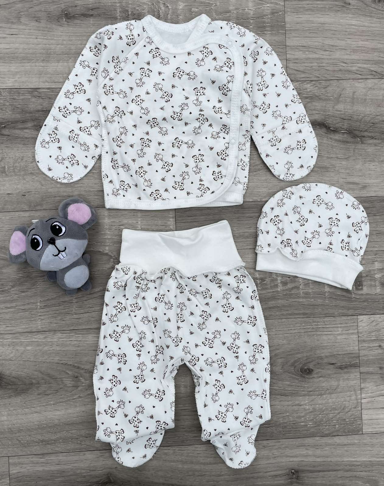 Комплект "Жирафик" молочный, мальчик 0-3 месяцев, фото