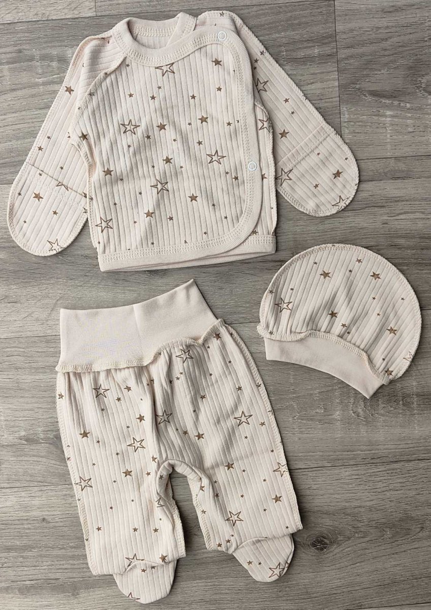 Комплект "звездочки" бежевый, унисекс 0-3 месяцев оптом уп. - 2 шт.