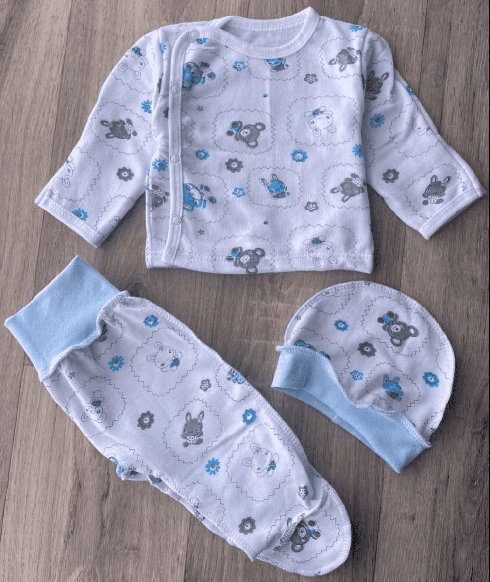 Комплекти "Ведмедики" блакитний, хлопчик 0-3 місяців оптом уп. - 2 шт.