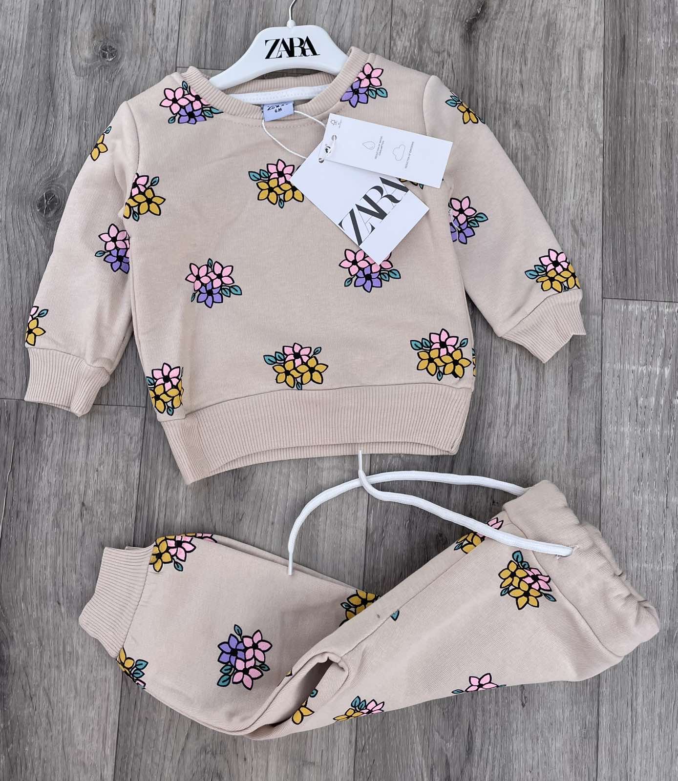 Костюм «Цветочки» бежевый, девочка 6-9-12-18-24 месяцев оптом уп. - 5 шт.