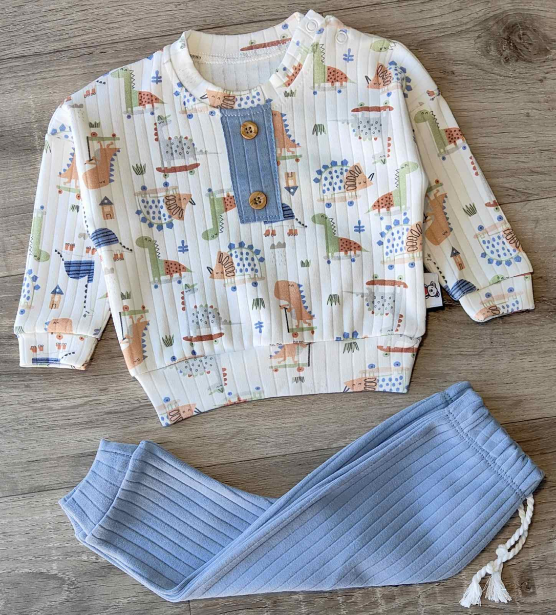 Костюм Anilco "Dino" блакитний, хлопчик 3-6-9 місяців оптом уп. - 3 шт.