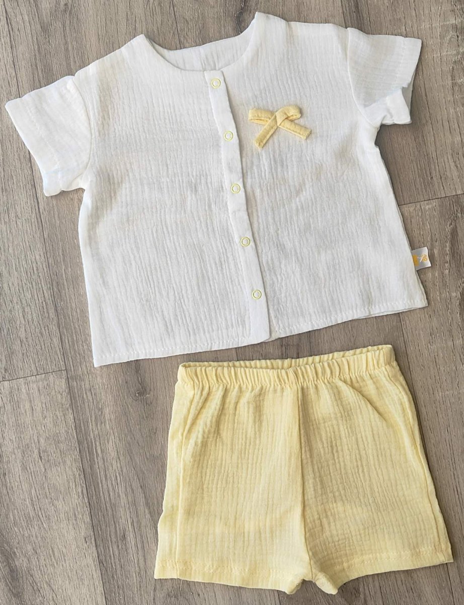 Костюм «бантик» молочний + жовтий, дівчинка 12-18-24-36 місяців оптом уп. - 4 шт.
