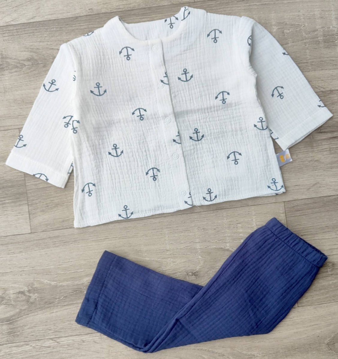 Костюм «Якорь» молочный + синий, мальчик 12-18-24-36 месяцев оптом уп. - 4 шт.