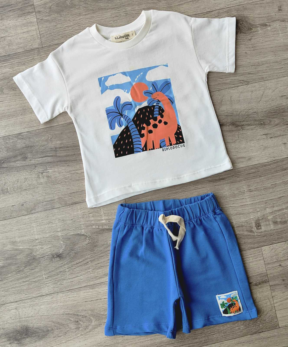 Костюм Liliboom "Динозаврик" синій, хлопчик 1-2-3-4 років оптом уп. - 4 шт.