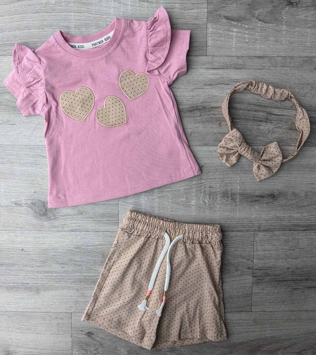 Костюм Partner «Серця» теракотовий, дівчинка 9-12-18-24 місяців оптом уп. - 4 шт.