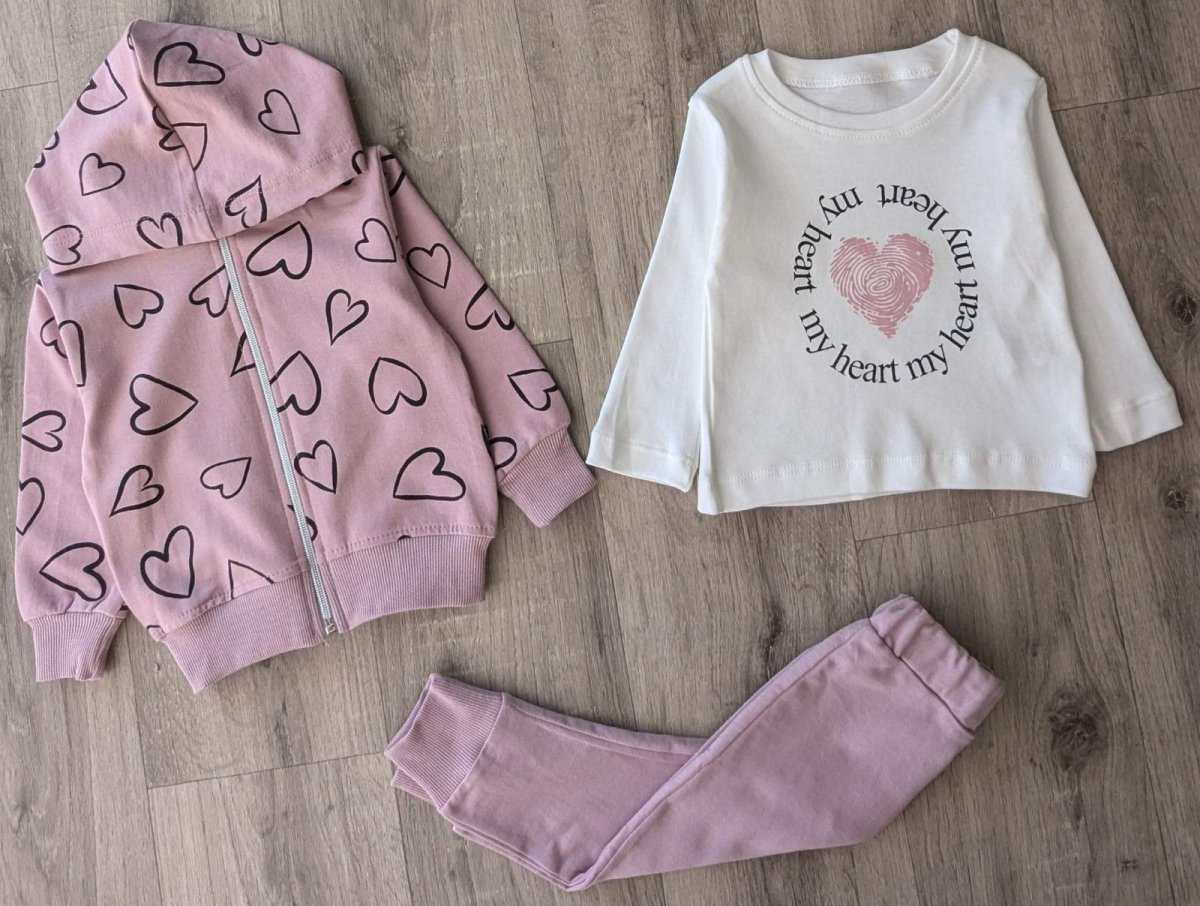 Костюм Partner "сердечки" рожевий, дівчинка 9-12-18-24 місяців оптом уп. - 4 шт.