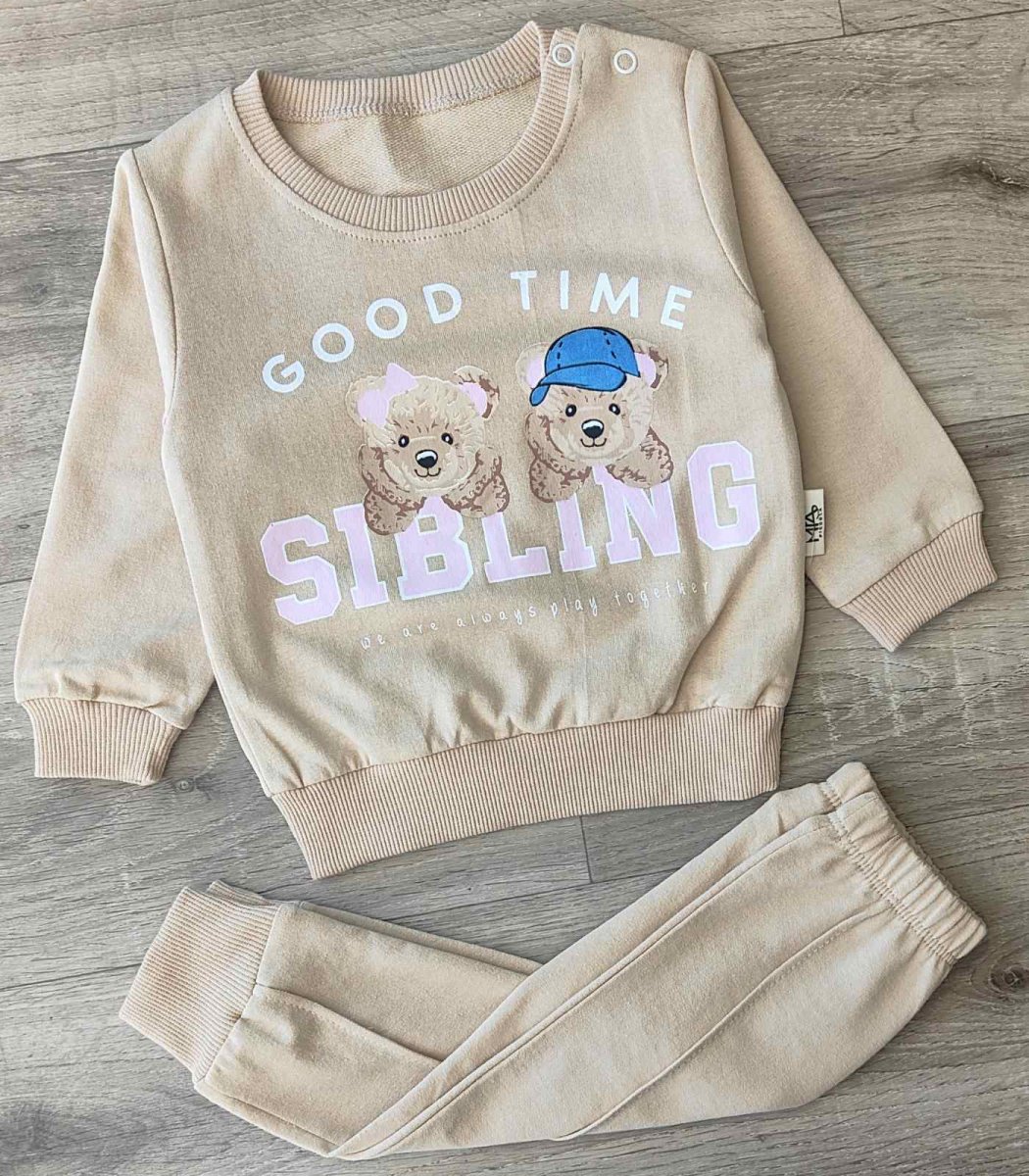 Костюм Piccola “Sibling” бежевый, девочка 9-12-18-24 месяцев оптом уп. - 4 шт.