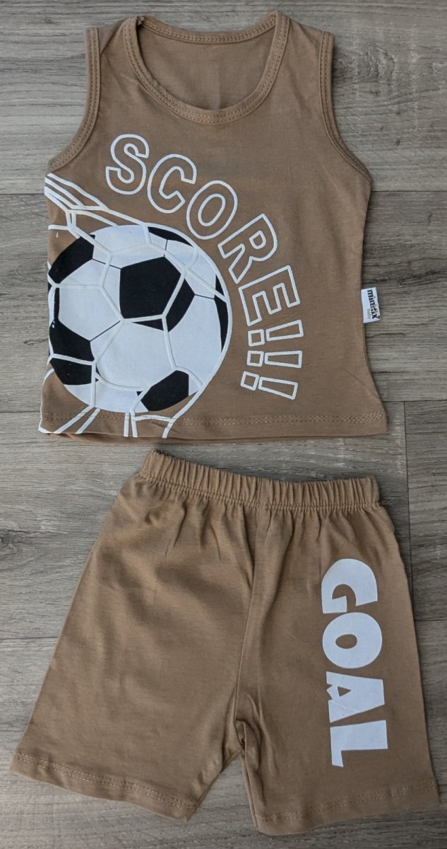 Костюм "SCORE!!!" коричневый, мальчик 9-12-18-24 месяцев оптом уп. - 4 шт.