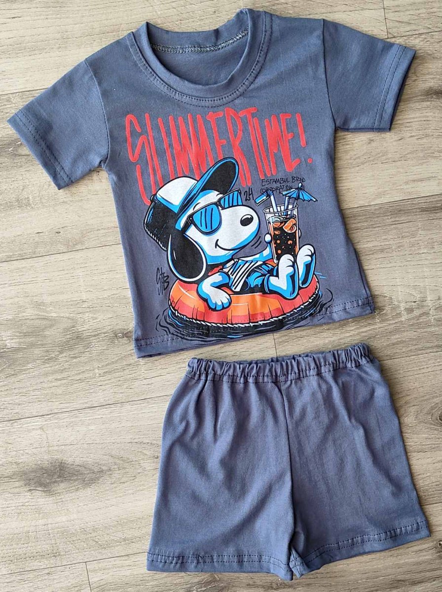 Костюм "Summer time!" сірий(графітовий), хлопчик 9-12-24-36 місяців оптом уп. - 4 шт.