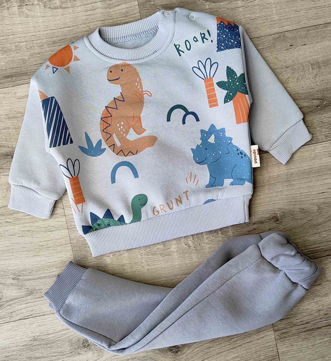 Костюм Vovido Kids "Динозаврики" сірий, хлопчик 6-9-12-18 місяців оптом уп. - 4 шт.