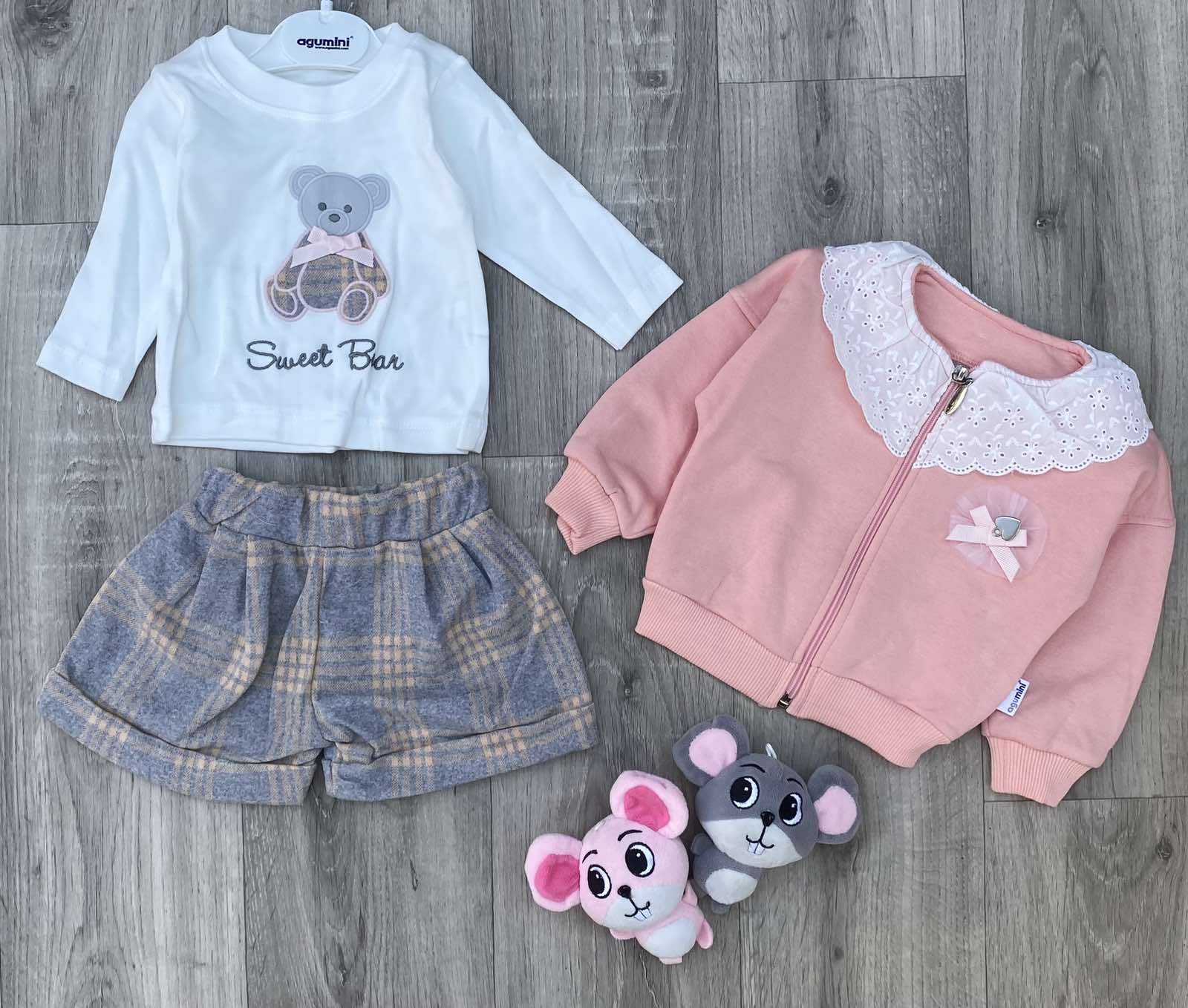 Костюм Agumini "Sweet Bear" персиковий, дівчинка 6-9-12 місяців оптом уп. - 3 шт.