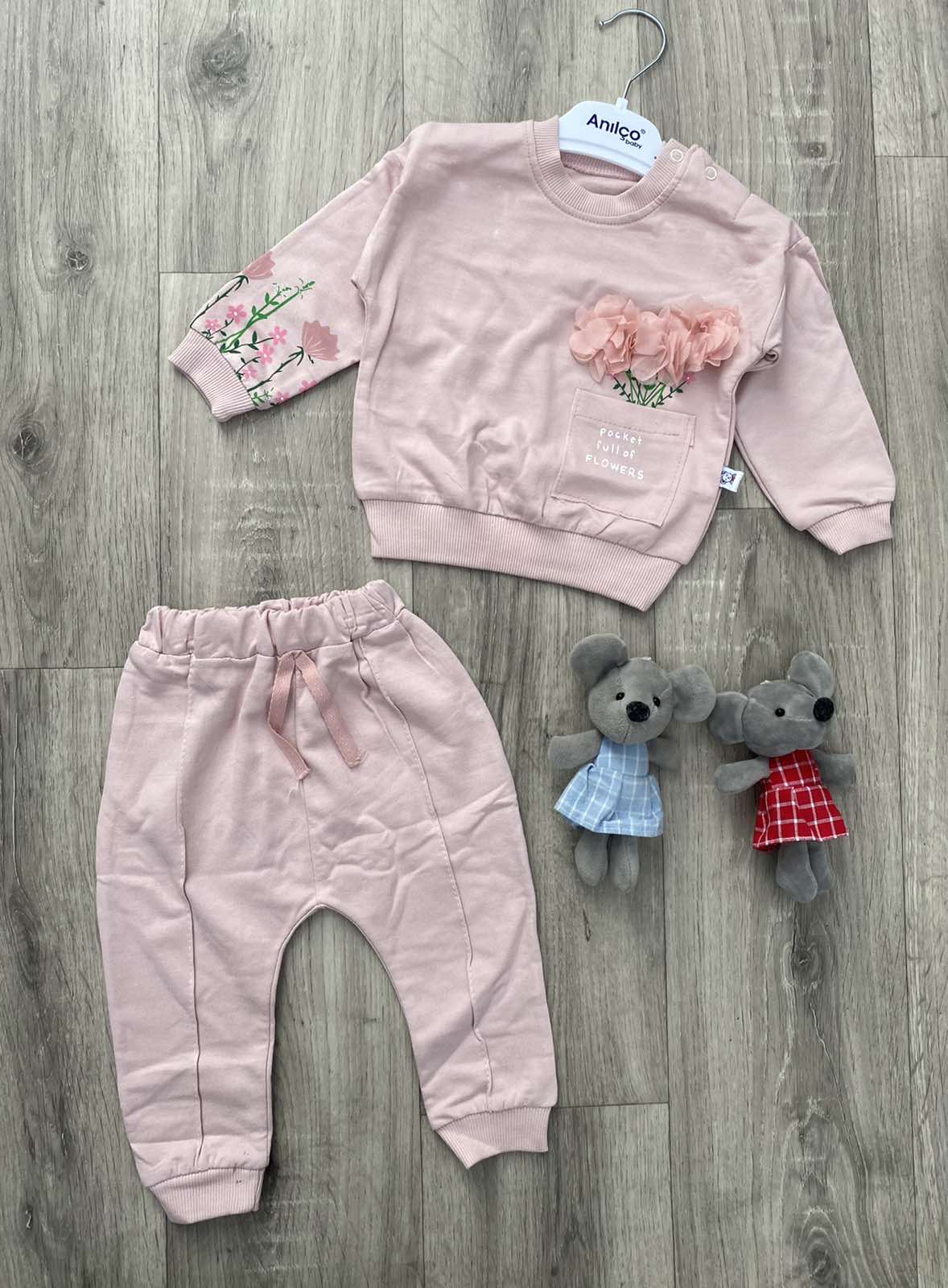 Костюм Anilco "Квіточки" теракотовий, дівчинка 6-9-12 місяців оптом уп. - 3 шт.