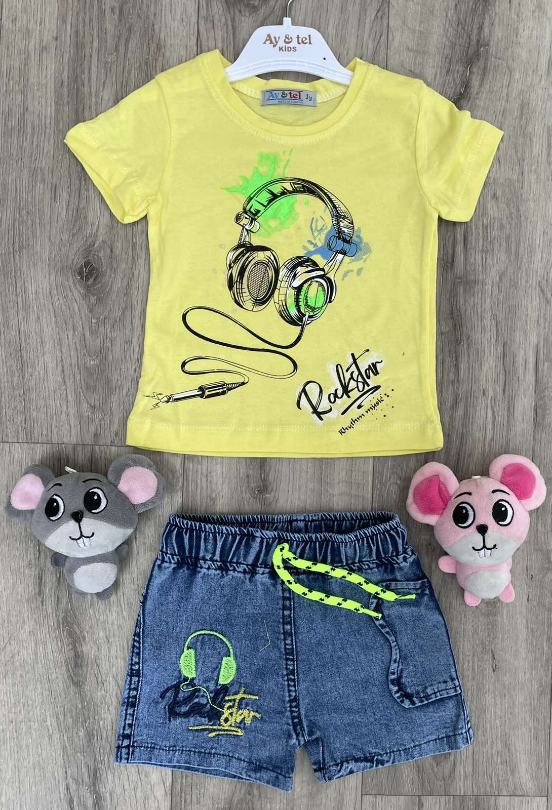 Костюм AY & TEL "Навушники" жовтий, хлопчик 1-2-3-4 років оптом уп. - 4 шт.