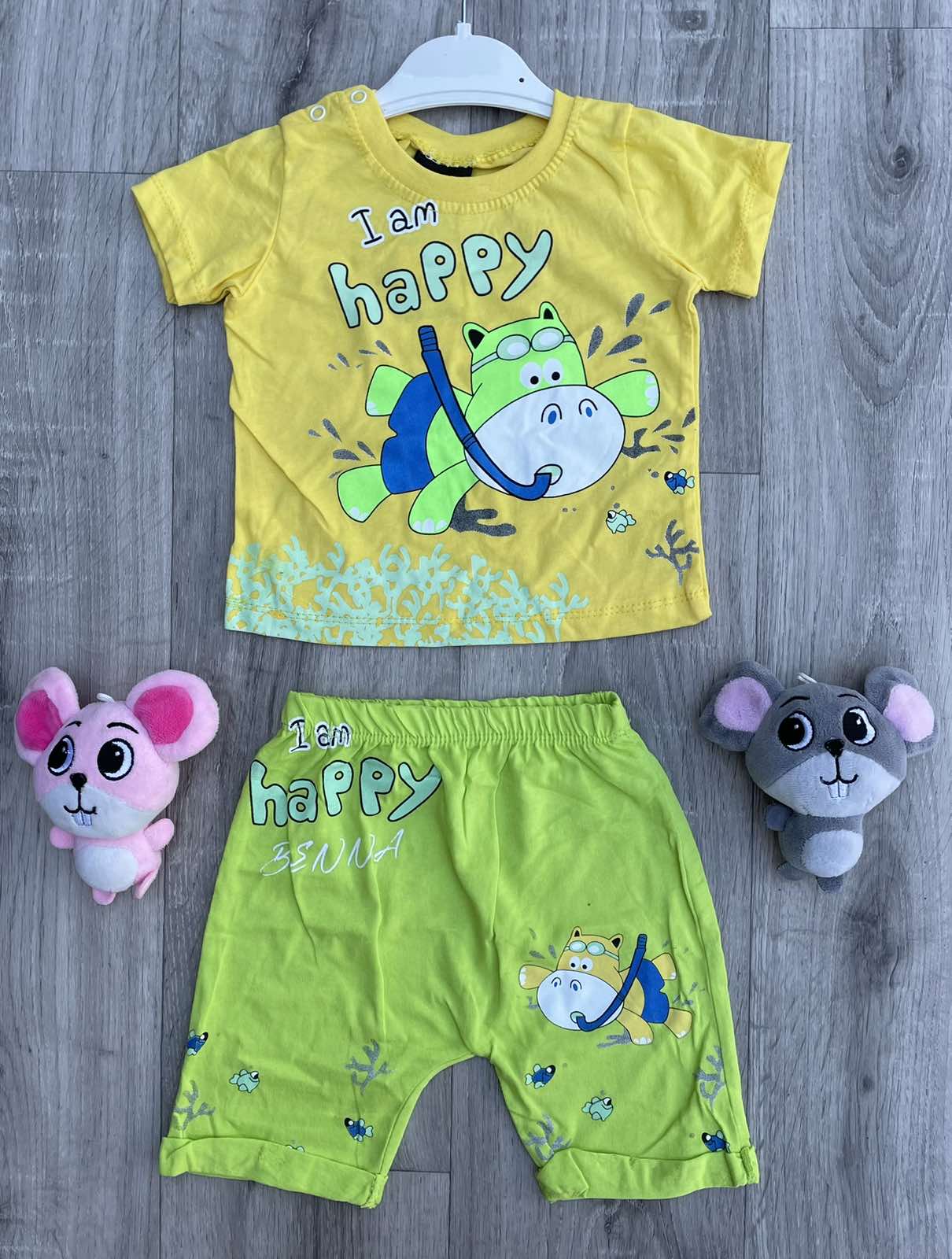 Костюм Benna "I'm happy" жовтий, хлопчик 9-12-18-24 місяців оптом уп. - 4 шт.