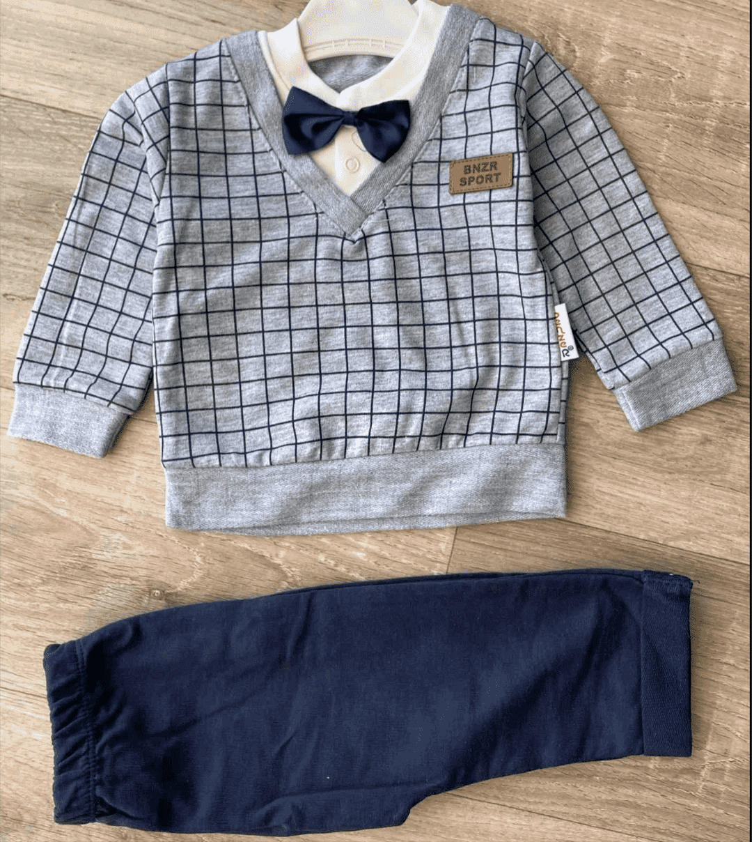Костюм Benzer "Клітинка" сірий, хлопчик 9-12-18 місяців оптом уп. - 3 шт.