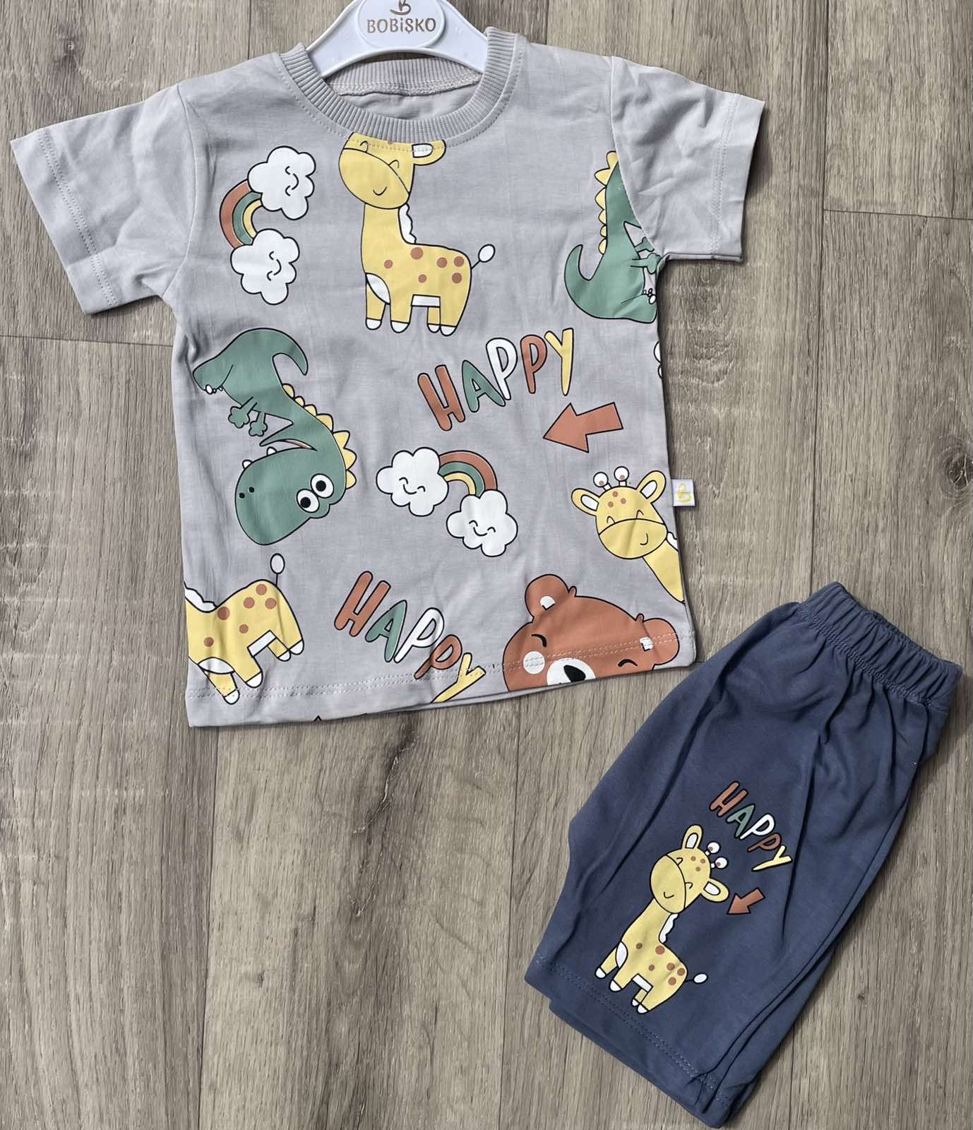 Костюм Bobisko «Happy» серый, мальчик 9-12-18-24 месяцев оптом уп. - 4 шт.
