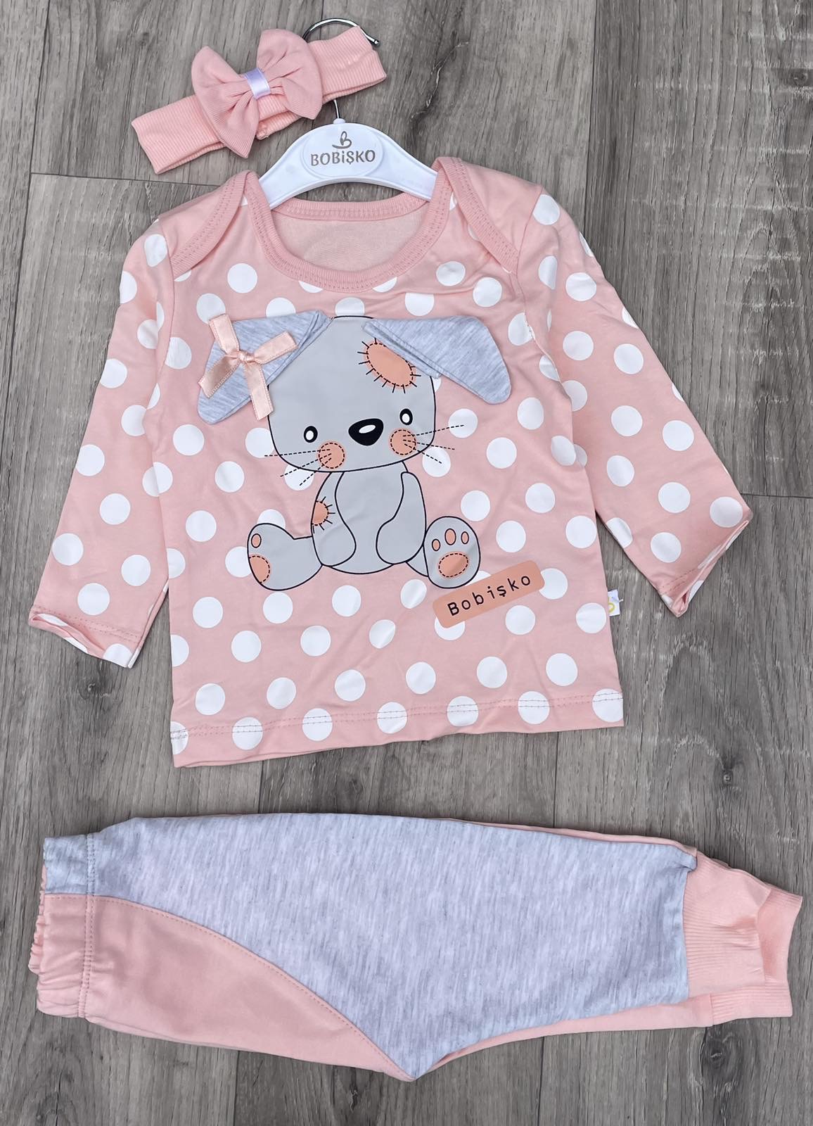 Костюм Bobisko «Зайчик» персиковий, дівчинка 3-6-9-12 місяців оптом уп. - 4 шт.