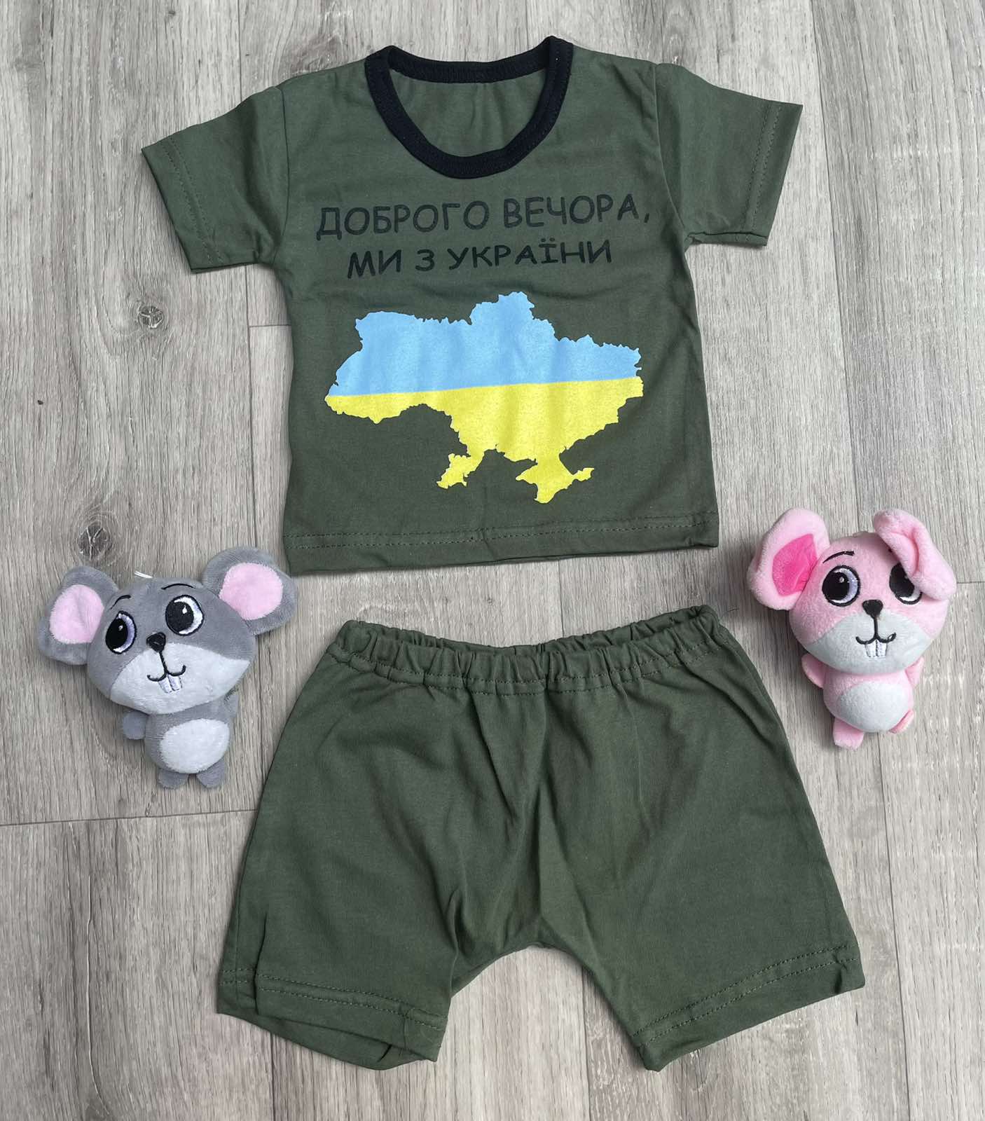 Костюм "Доброго вечора ми з України" хакі, хлопчик 9-12-24-36 місяців оптом уп. - 4 шт.